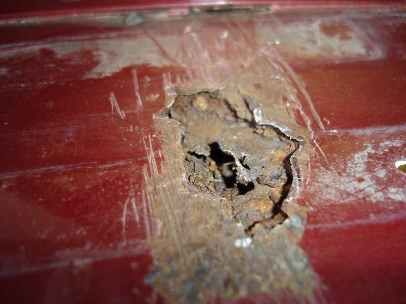 Auf dem Trittblech hinten ist es schön durchgerostet, genau da wo von unten diese Traverse ist.