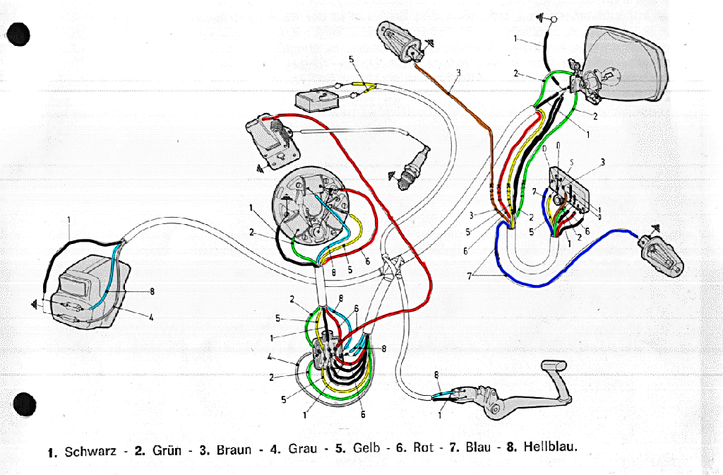 Hi, das tut mir leid, das ist kein Schaltplan, sondern ein Rätsel. ich kann in der Lichtmaschine keine Einzelheiten erkennen. Auch ist nicht zu ersehen, wie der Motor normalerweise ausgeschaltet wird. Das muss mit der Spule zusammenhängen, welche die Zündung mit Strom versorgt.