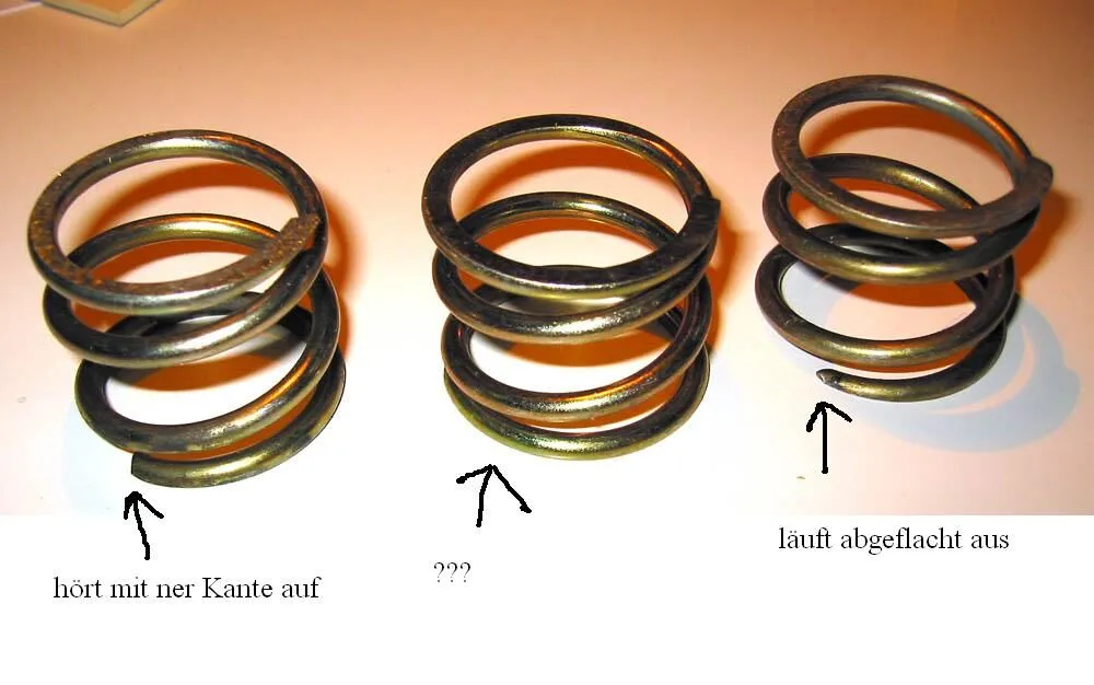 Das Ende der Feder (Bodenseite) läuft flach aus, so wie's bei Polini auch ist. Die Pia & Malossi Federn laufen meines Wissens nicht aus, sondern mind. 1ein Ende hört einfach auf.