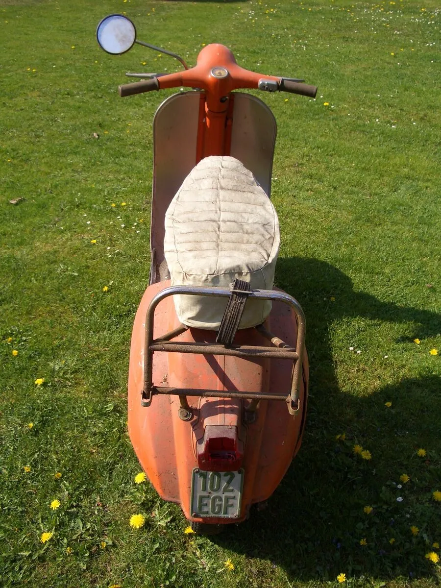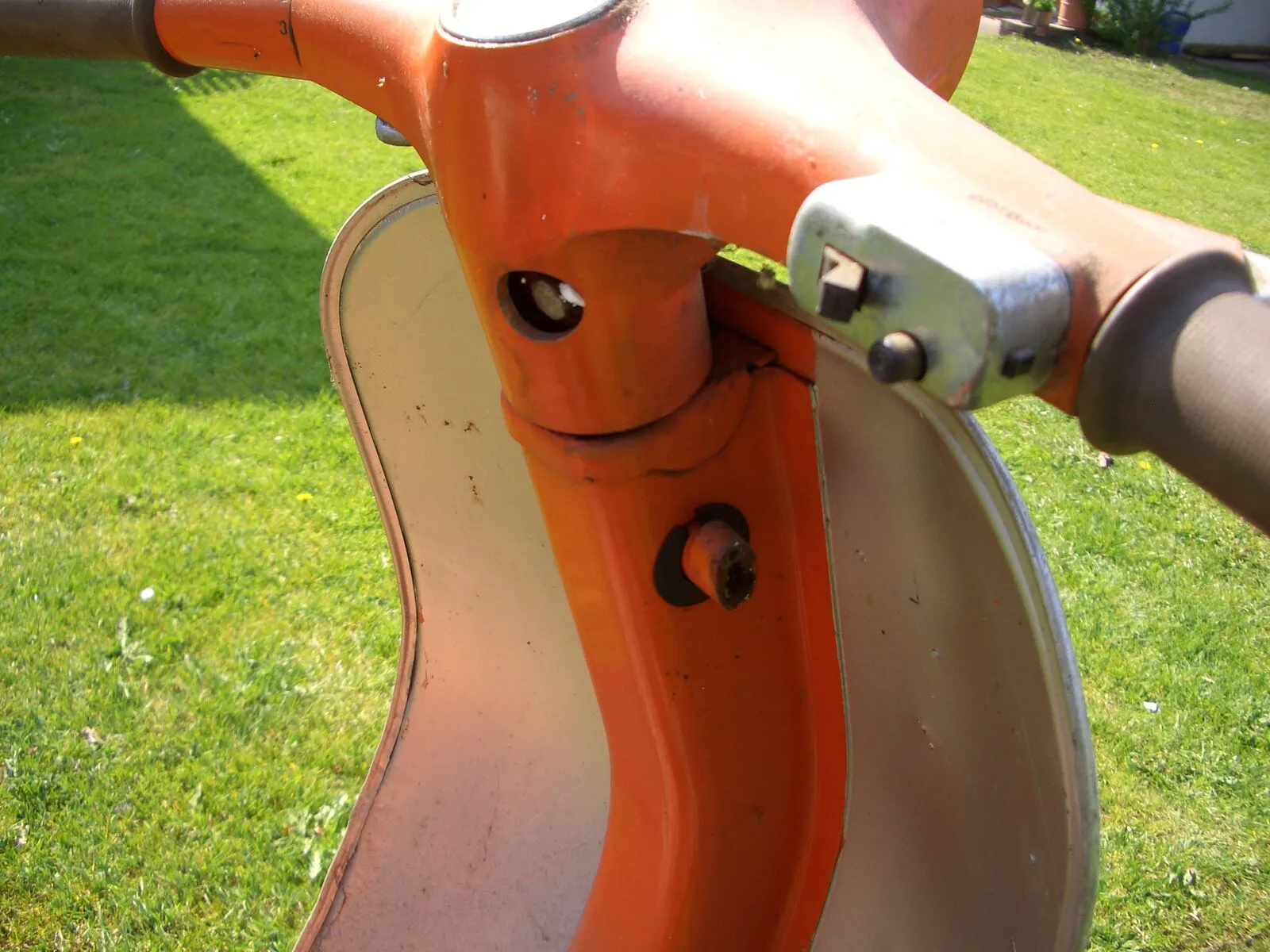 - orange-silber lackiert, wobei ich denke, dass der orange Lack original ist und das silber im Beinschild selbstgemacht ist