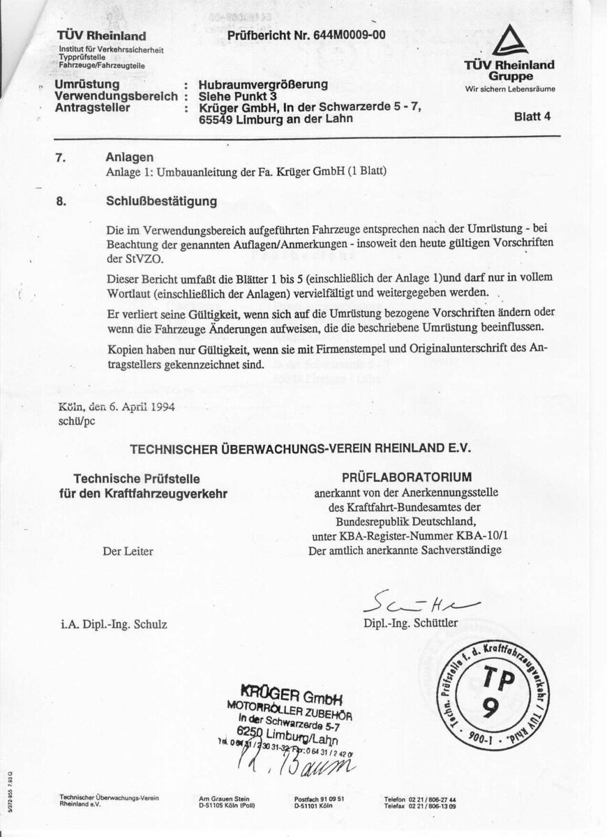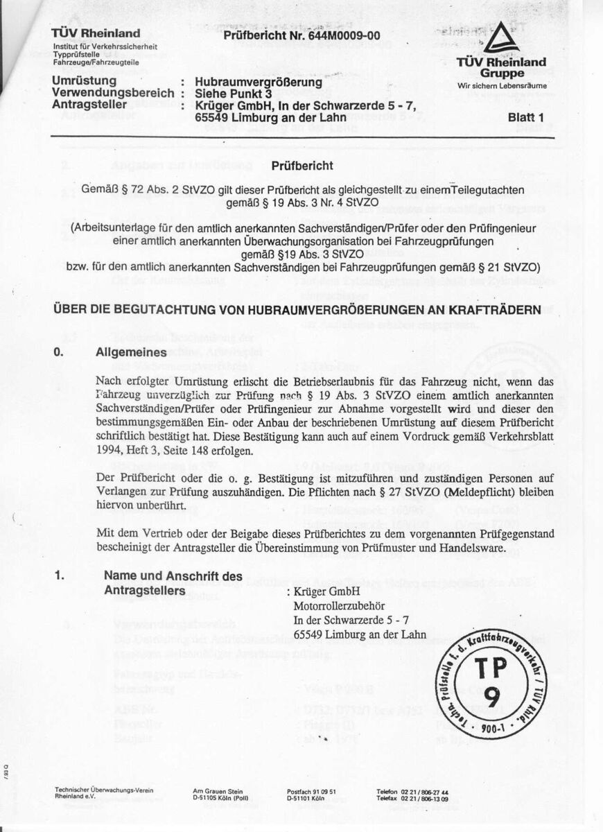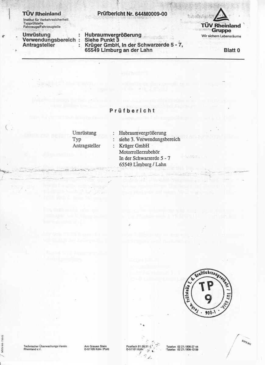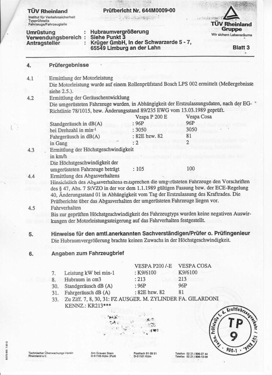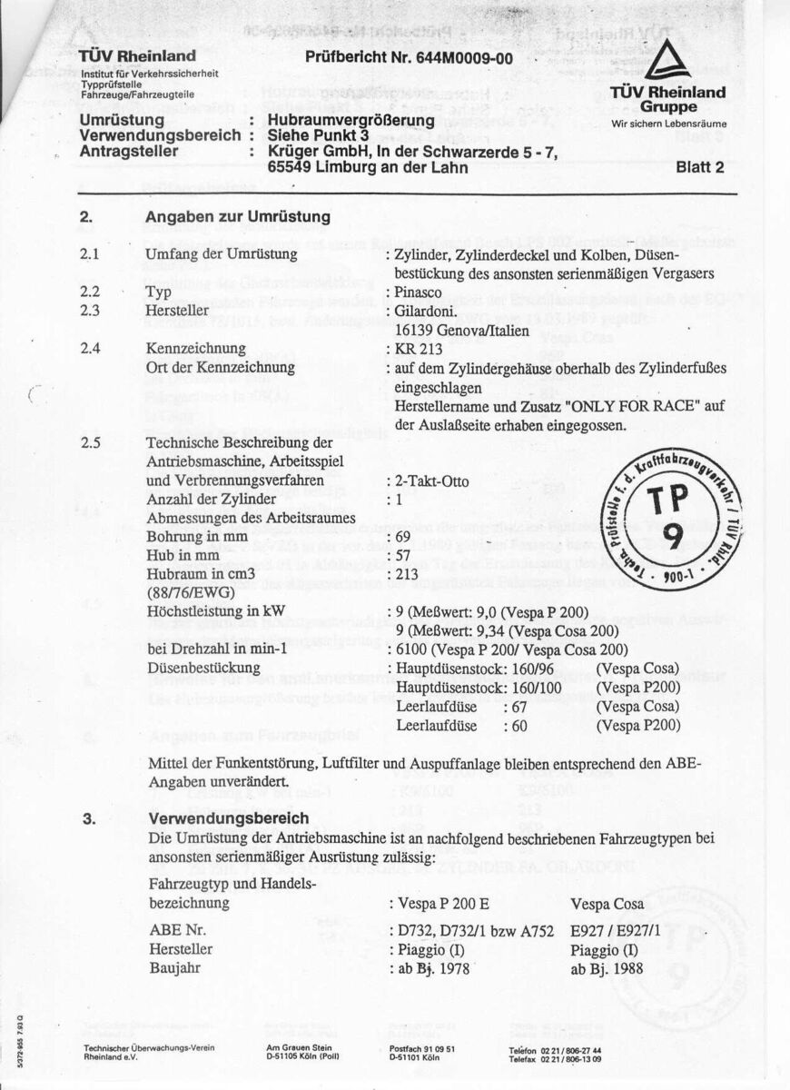 Auf dem Fuß wird ja wohl irgendwo Pinasco stehen? Und im Gutachten eine Bohrung und ein Hub. Auf dieser Basis würde ich mal versuchen mit dem netten Herrn vom TÜV zu sprechen...