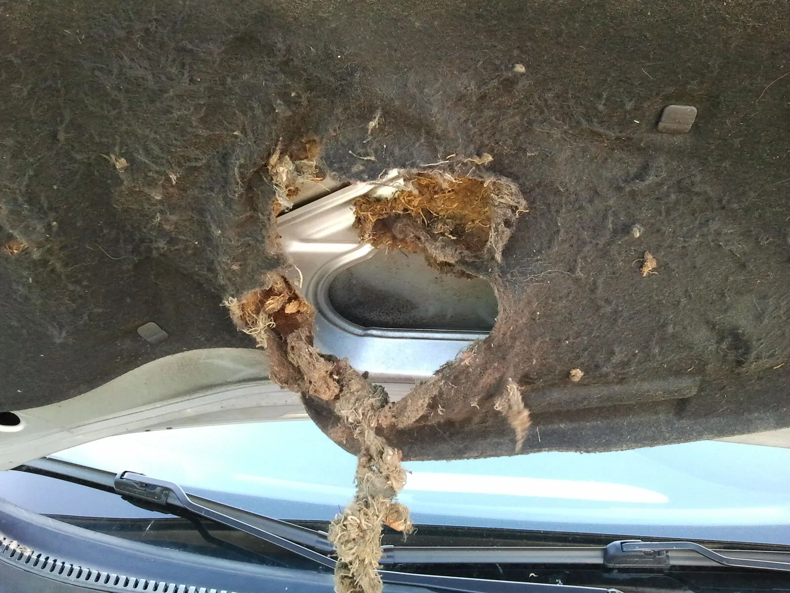 Heute Morgen beim losfahren hör ich ein gluckern und seh im Fussraum wie das Wasser reinläuft, dann seh ich wie auch an der Windschutzscheibe INNEN das Wasser runterläuft. Da seh ich meinen Dachhimmel