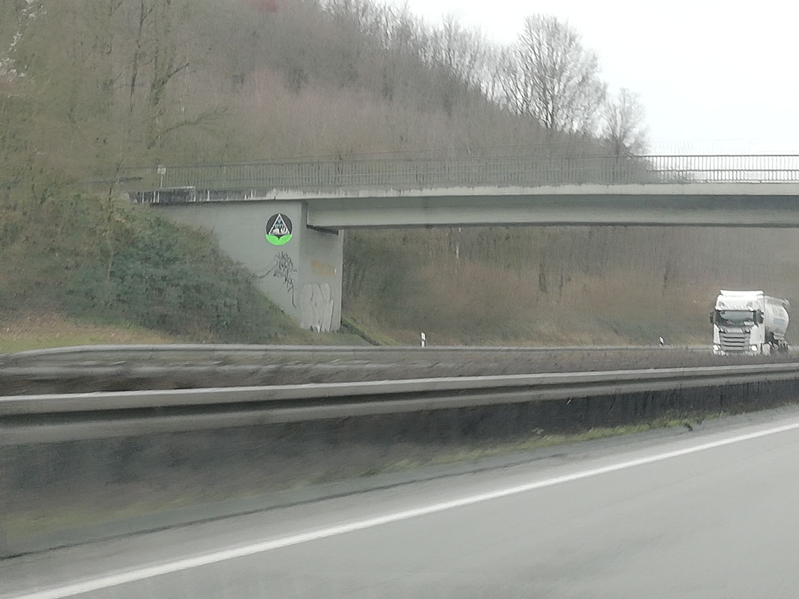 Sieht man hier an der A 2 oft an Autobahnbrücken. Auch im Ruhrpott.
