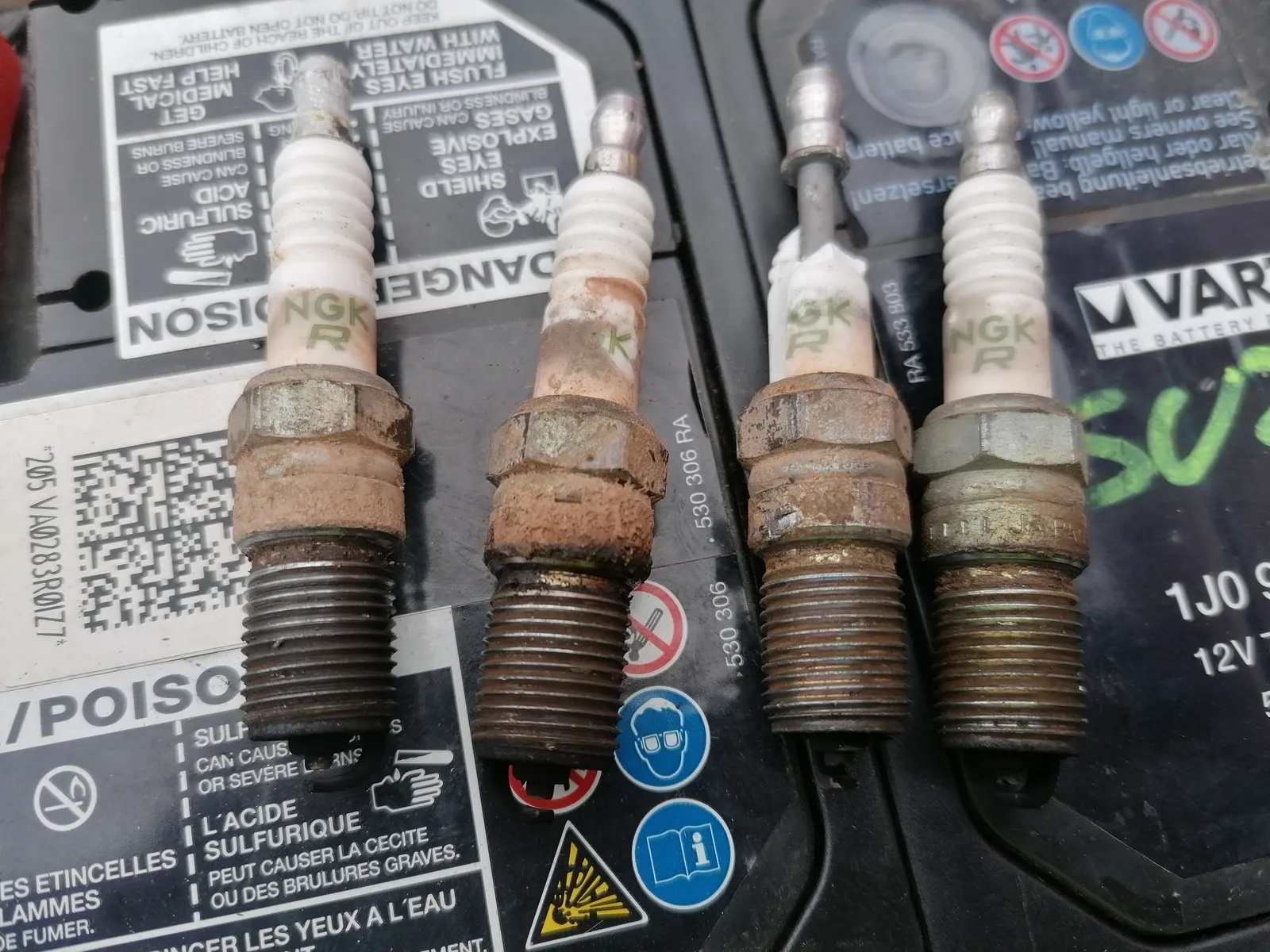 Ne externe dazwischen gemacht. Die hat zu wenig Druck haben wir eben bemerkt. Ne andere dazwischen gemacht. Etwas besser aber nicht optimal. Lief scheiße die Kiste. Alle Kontakte gesäubert. Brachte auch nix. Kerzen raus. Stark verrußt und eine ist beim losdrehen zerbröselt.