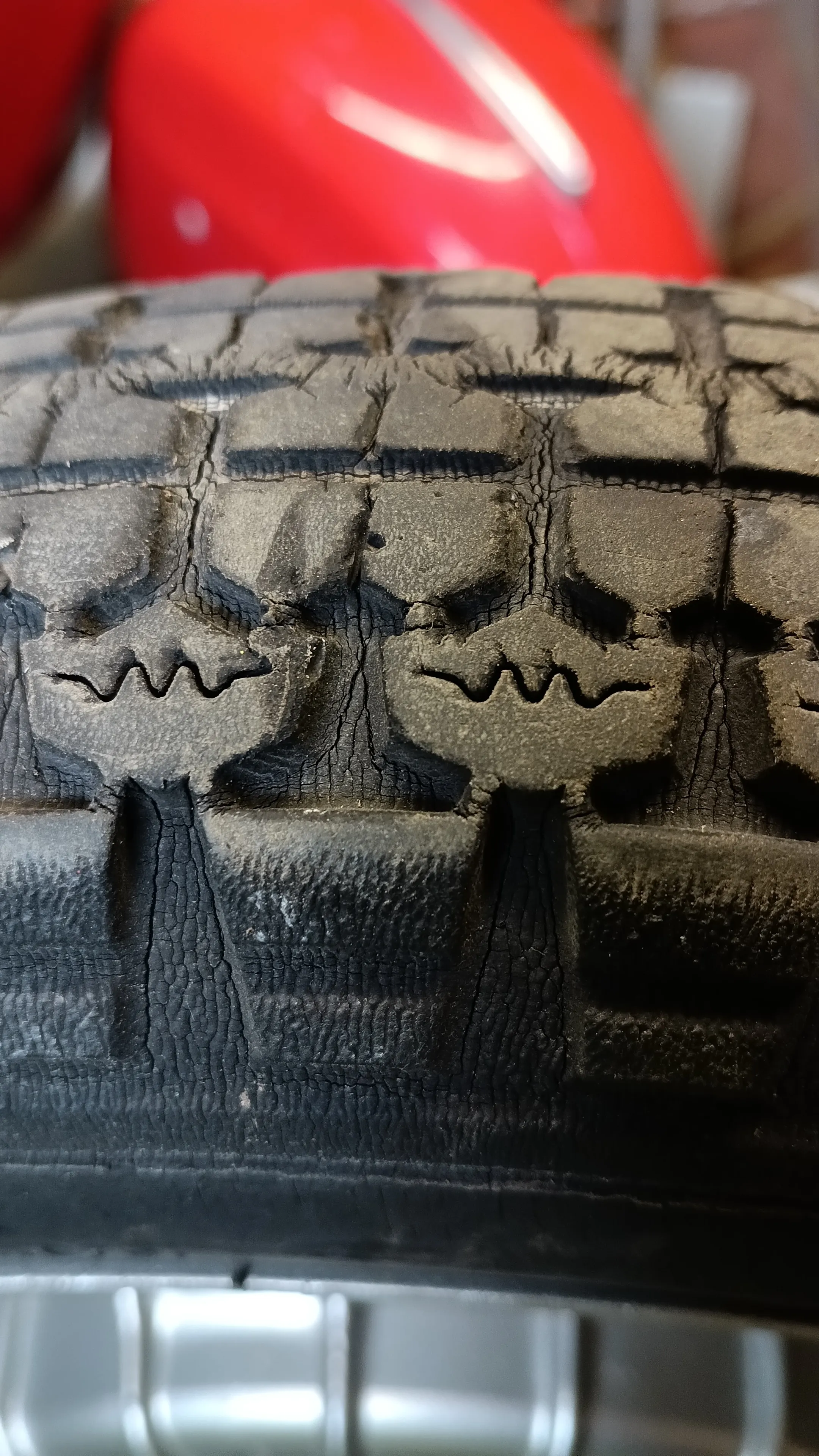 Die Reifen sind nicht uppe, die sind "Vintage" :D