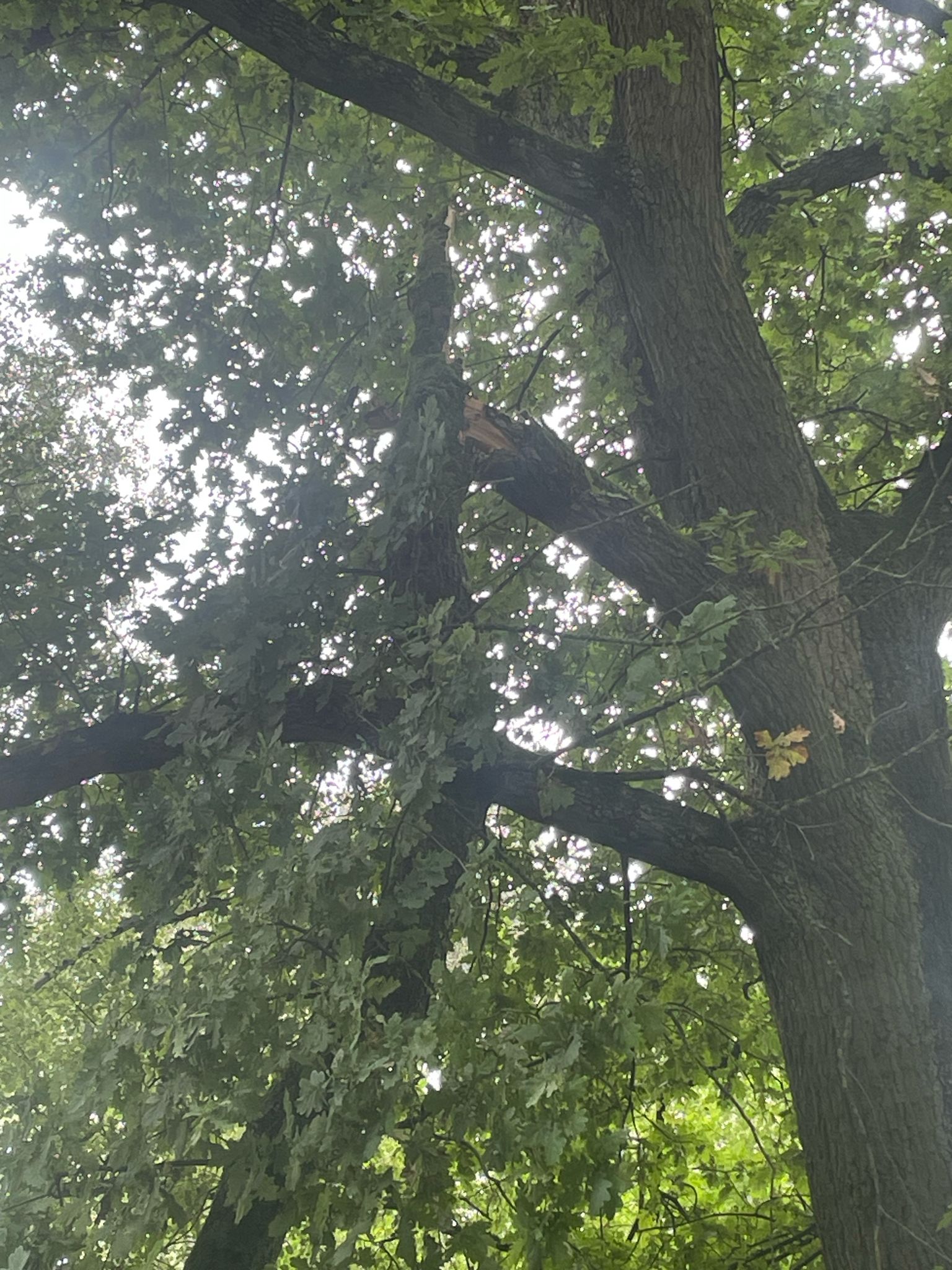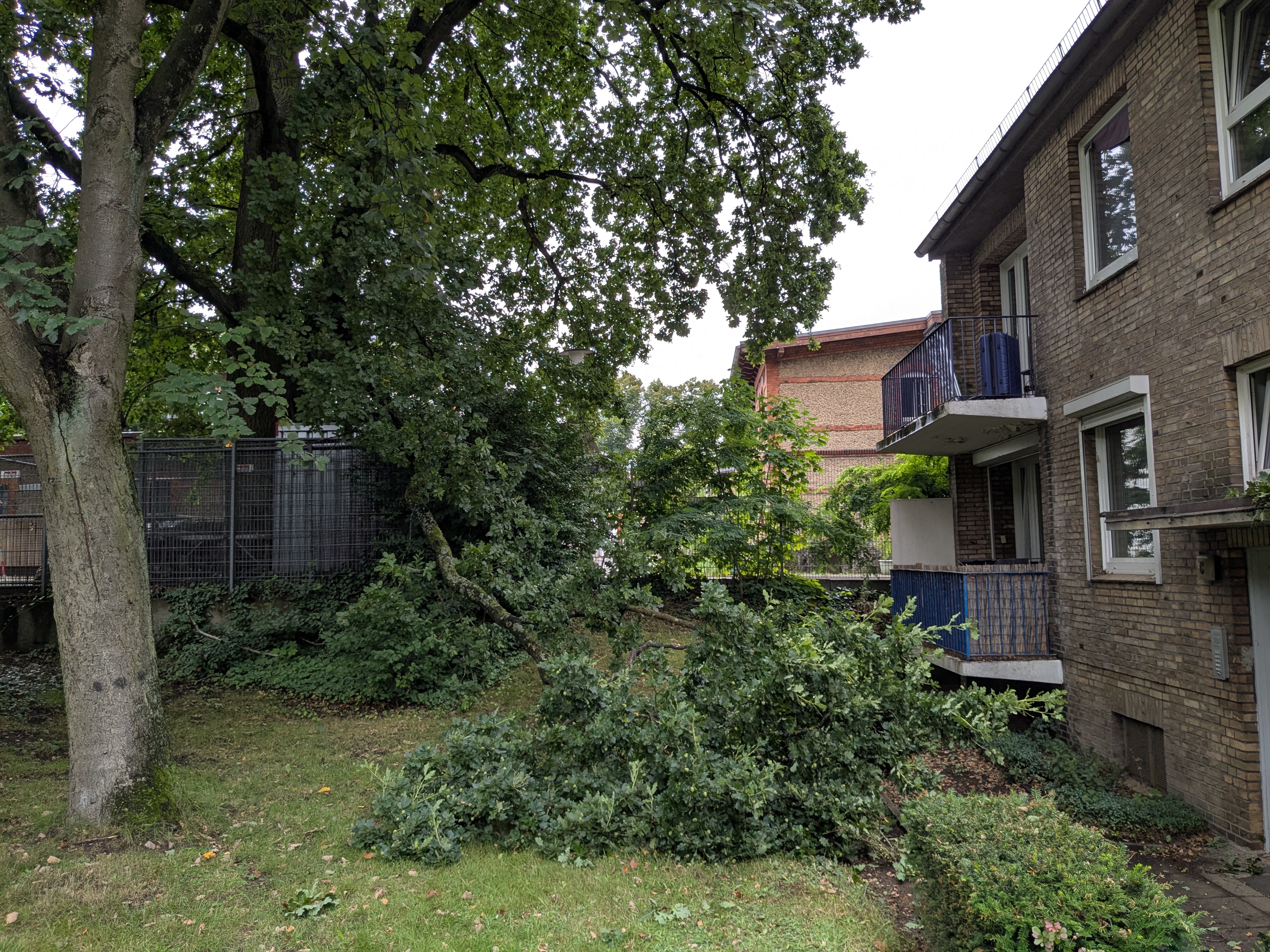 Bei den freiwilligen Feuerwehren im Umkreis ist heute kein Telefondienst. Also muss (wohl oder) übel der Notruf ran, auch wenns eher kein Notfall ist. Feuerwehr lehnt dankend ab und schickt den involvierten Anrufer zur Polizei. Also kurz mitm Roller rüber, um Fotos zu präsentieren. Ergebnis: Nicht deren Bier. Sollen sich die Eigentümer des Grundstücks, auf dem der Baum steht, drum kümmern.