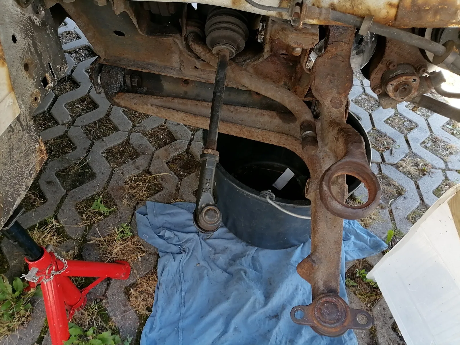 jede zweite Schraube muss mit dem Trennschneider rausgeschnitten werden (Spurstange, Traggelenk oben etc.)