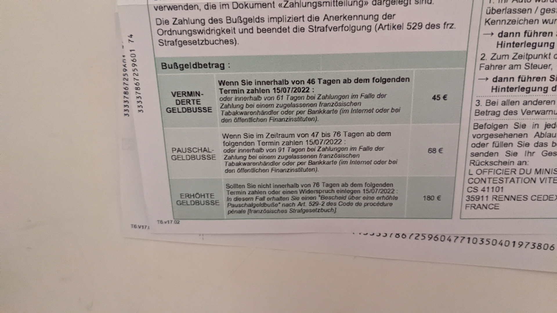 Auch wenn's Geld ist, den Aufreger nehm ich mit Humor. Und werde demnächst in Frankreich langsam fahren, sehr sehr langsam!, das haben die davon! ![]()