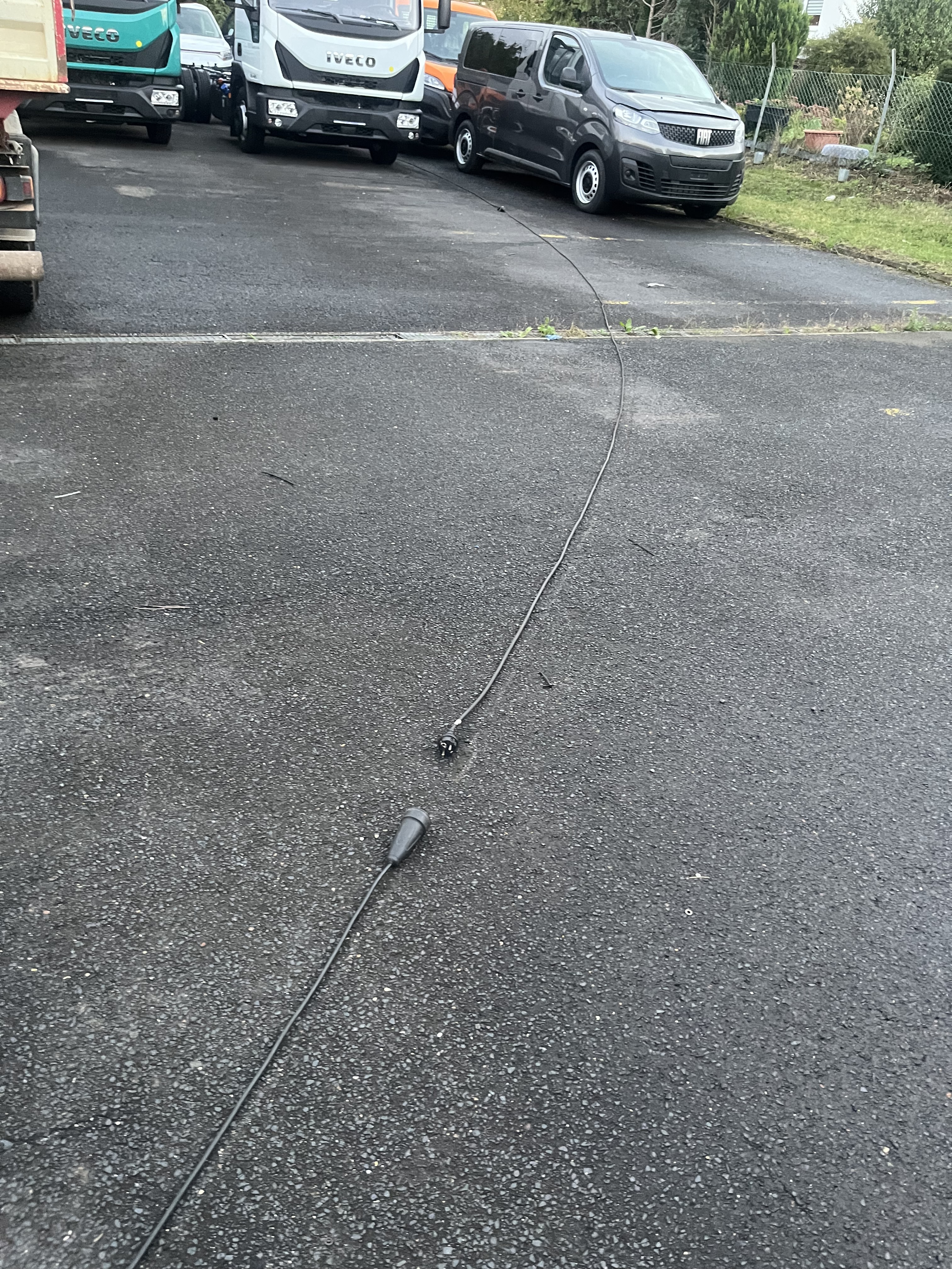 Ein vor der Werkstatt ausserhalb stehendes Fahrzeug, soll über Nacht mit einem Ladegerät versehen werden, was man ja normalerweise , nicht als die geistig hochkarätigste Tätigkeit einstufen kann …Ich hatte Ihn darum gebeten, wenn er die Kabeltrommel nimmt, soll er diese doch „Bitte“ in eine Mülltüte einwickeln, als Schutz gegen den Regenfroehlich-)!