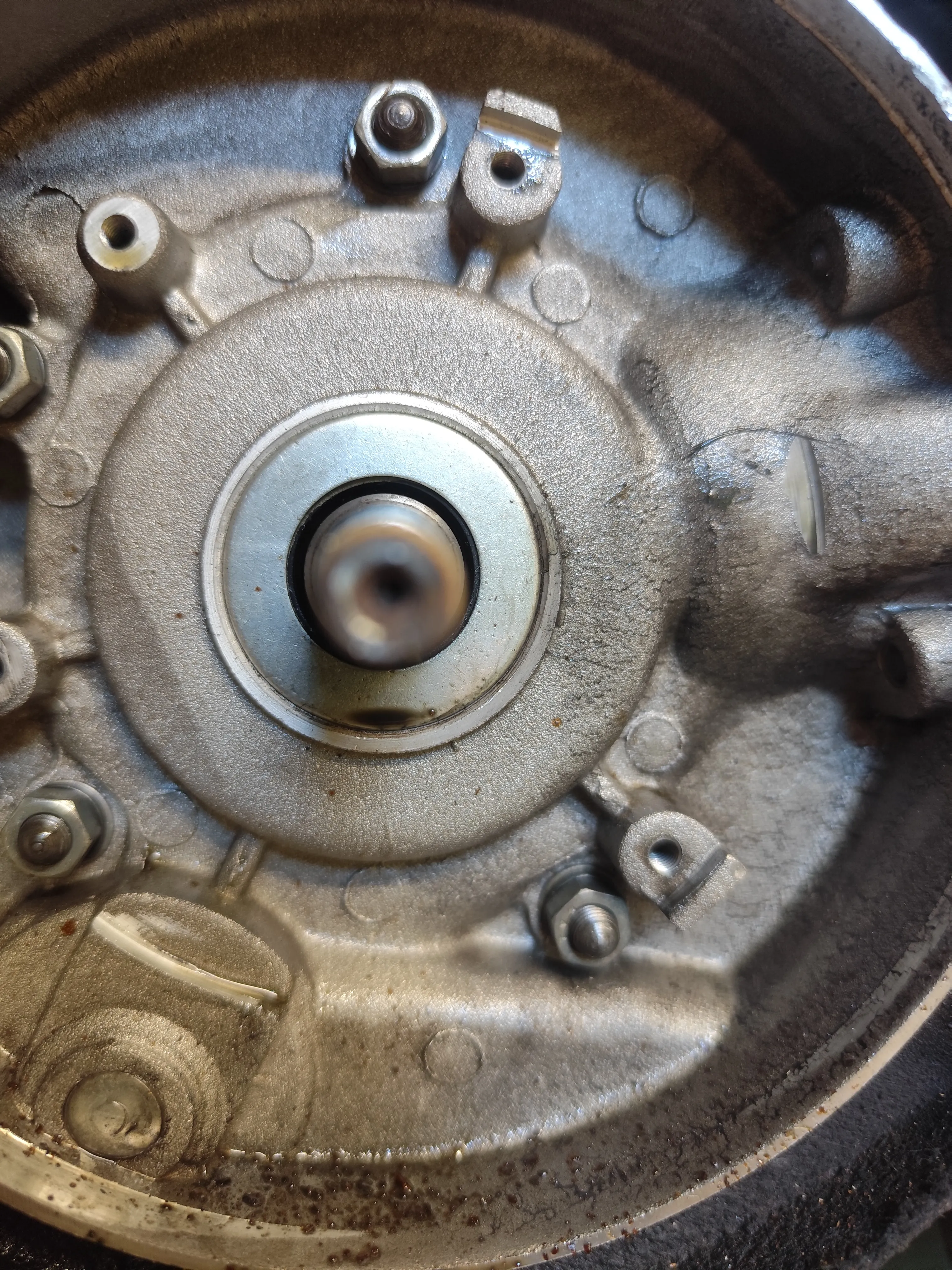 Heute ne schöne Tour mit dem Inder gemacht. War zwischendurch am ruckeln und nahm komisch Gas an. Als ich anner Werkstatt war mal grob drüber geschaut und hinterm Polrad war alles ölig. Also das mal runter. Simmerring im Arsch. Also Motor spalten.