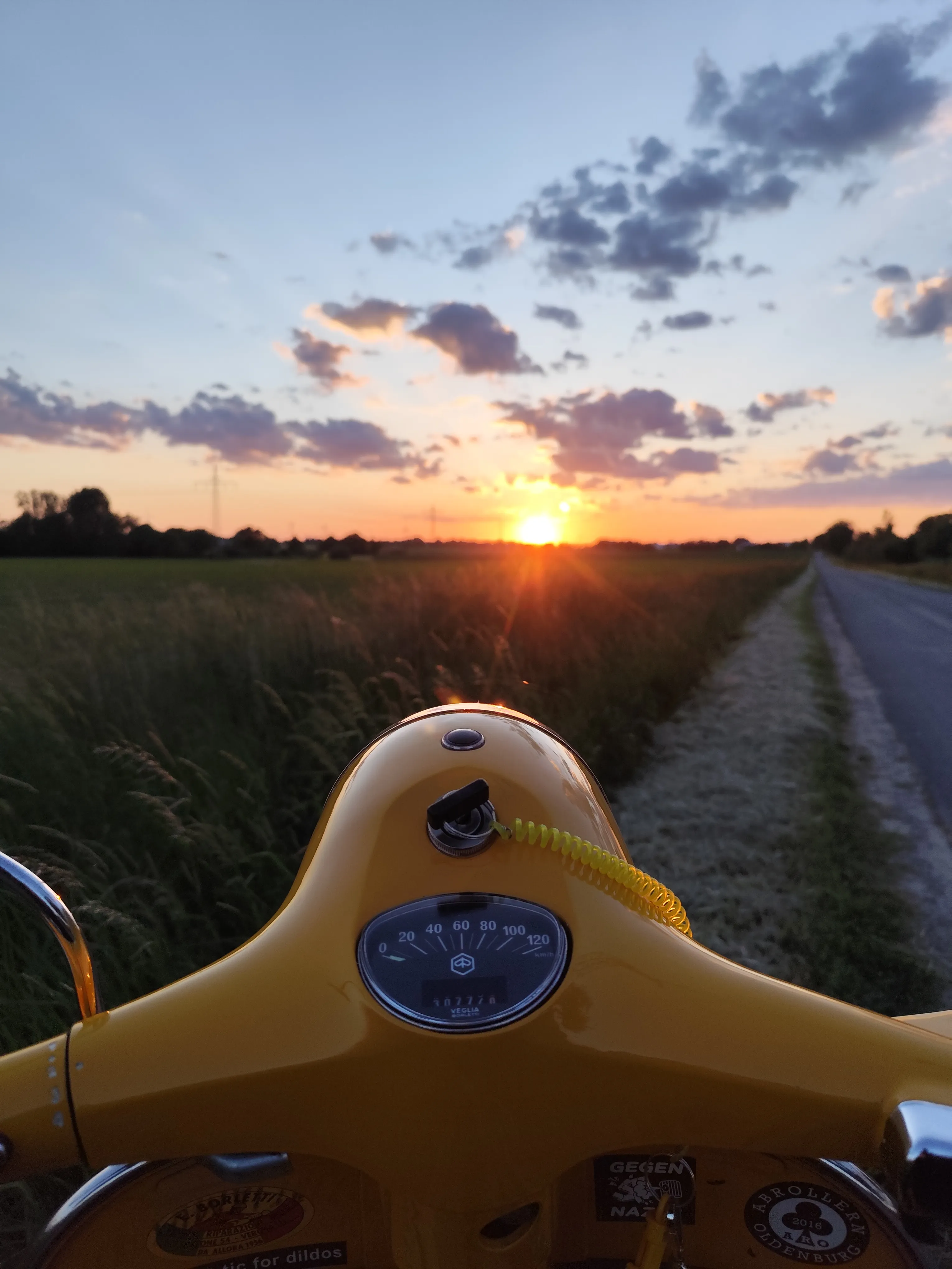 Dann die Rundlicht genommen. Läuft super. Gut 2 km vor Zuhause durch ne Kurve gedriftet. Reifen platt. Zum Glück nur unten. Natürlich kein Ersatzrad dabei weil körbchen verbaut. Das kommt jetzt ab und ein Reserverad dran. Davor kommt die öldose und gut ist.