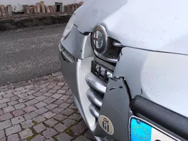 für die Bildergeilen hab ich auch ein Foto.... schaut nicht schlimm aus, aber Traverse hinten verbogen, beide Kotis geknickt, Motorhaube auch und Kühler auch im Arsch :S