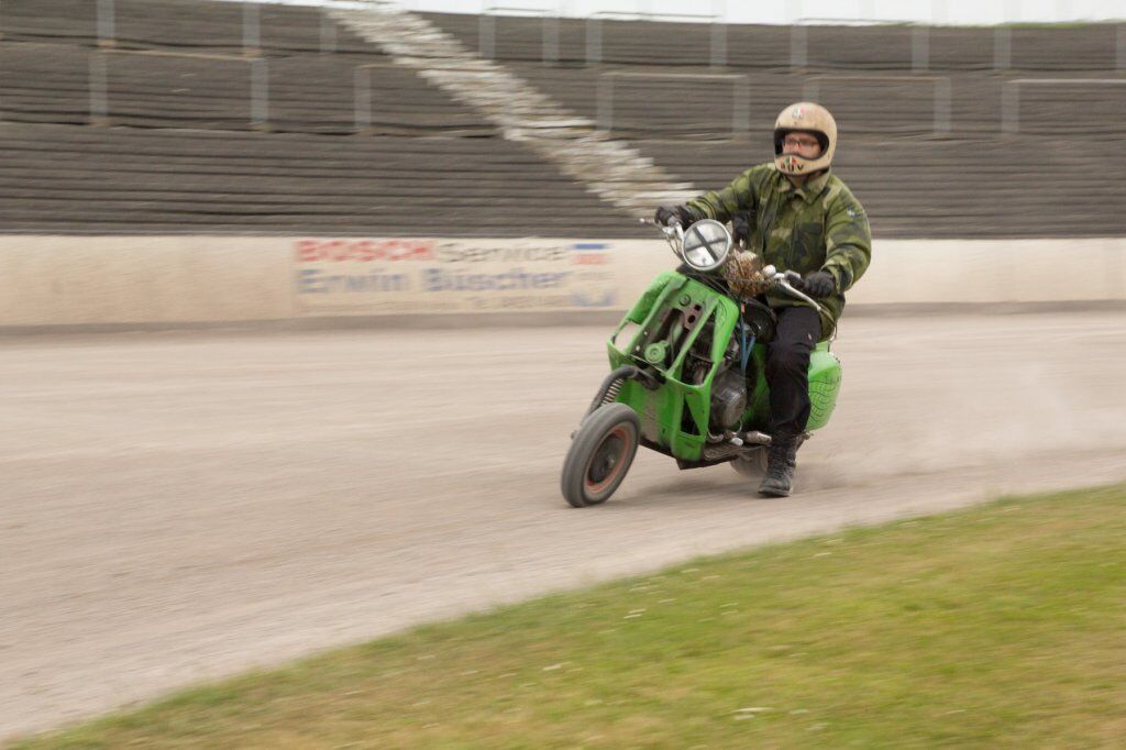 Hier ein Foto vom Vespa Run (VDT) in Halbemond 2013: Grüne Monster-Cosa mit 750 ccm-Motor. Machte ohne Krümmer Krach wie ein Space-Shuttle und lief wie ein Sack Nüsse: :D