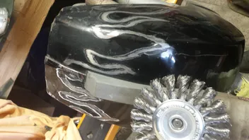 Leider in schwatt. Sah auch zu ordentlich aus. Also flex mit zopfbürste raus und dann flammen geflext die jetzt rosten dürfen.
