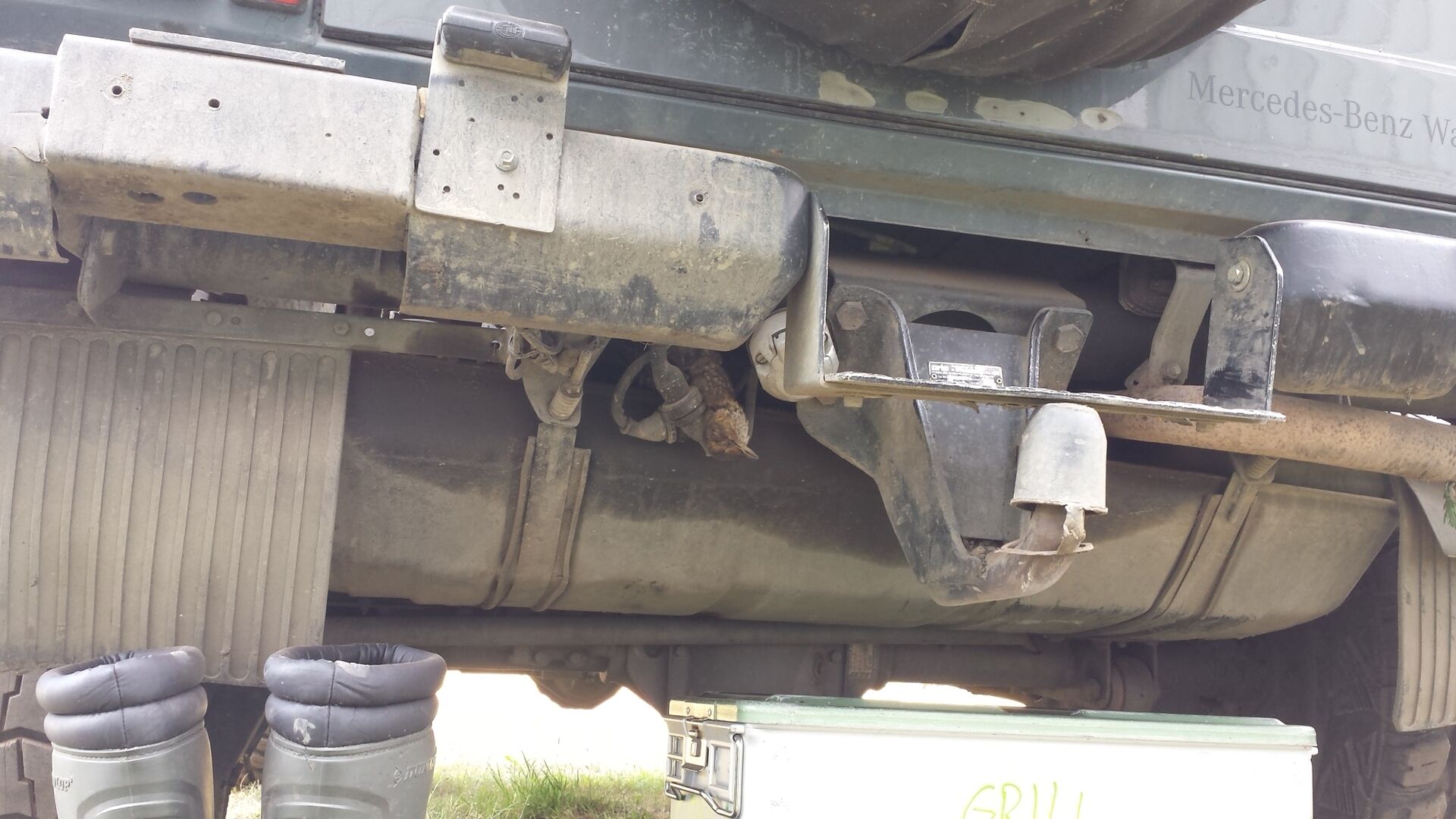 Und der auflieger steht jetzt vorne an der straße und wird morgen repariert.