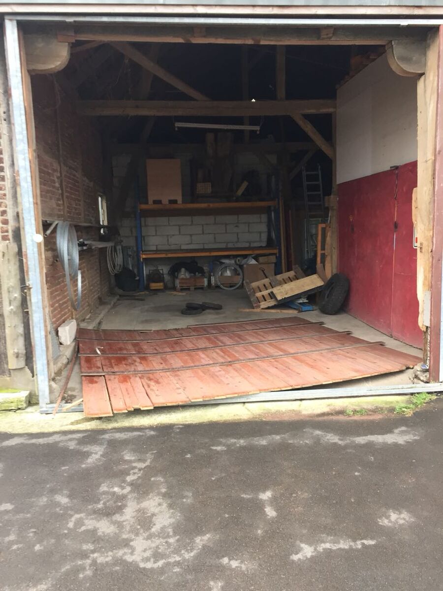 Das Tor an meiner Werkstatt hat's rausgedrückt und der First ist teilweise weg.
