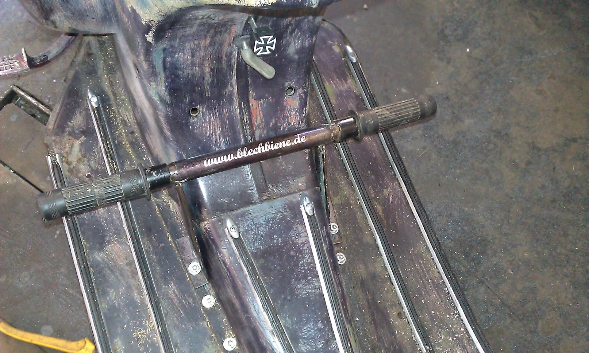 morgen wird er wieder zerlegt, außen sandgestrahlt und evtl. gleich lackiert.