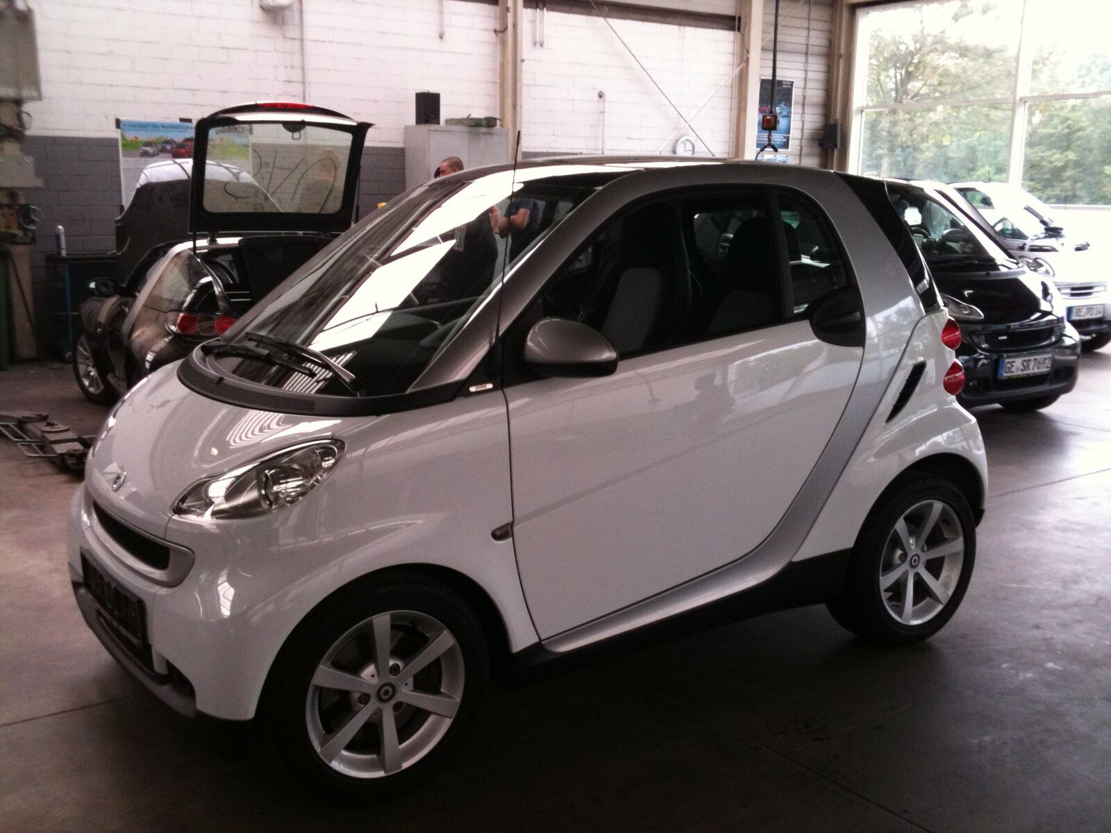 wo stehst denn? Da ist ein fieser Klumpen Fliegendreck vorm Bild, man kann das Auto dahinter nicht erkennen...
