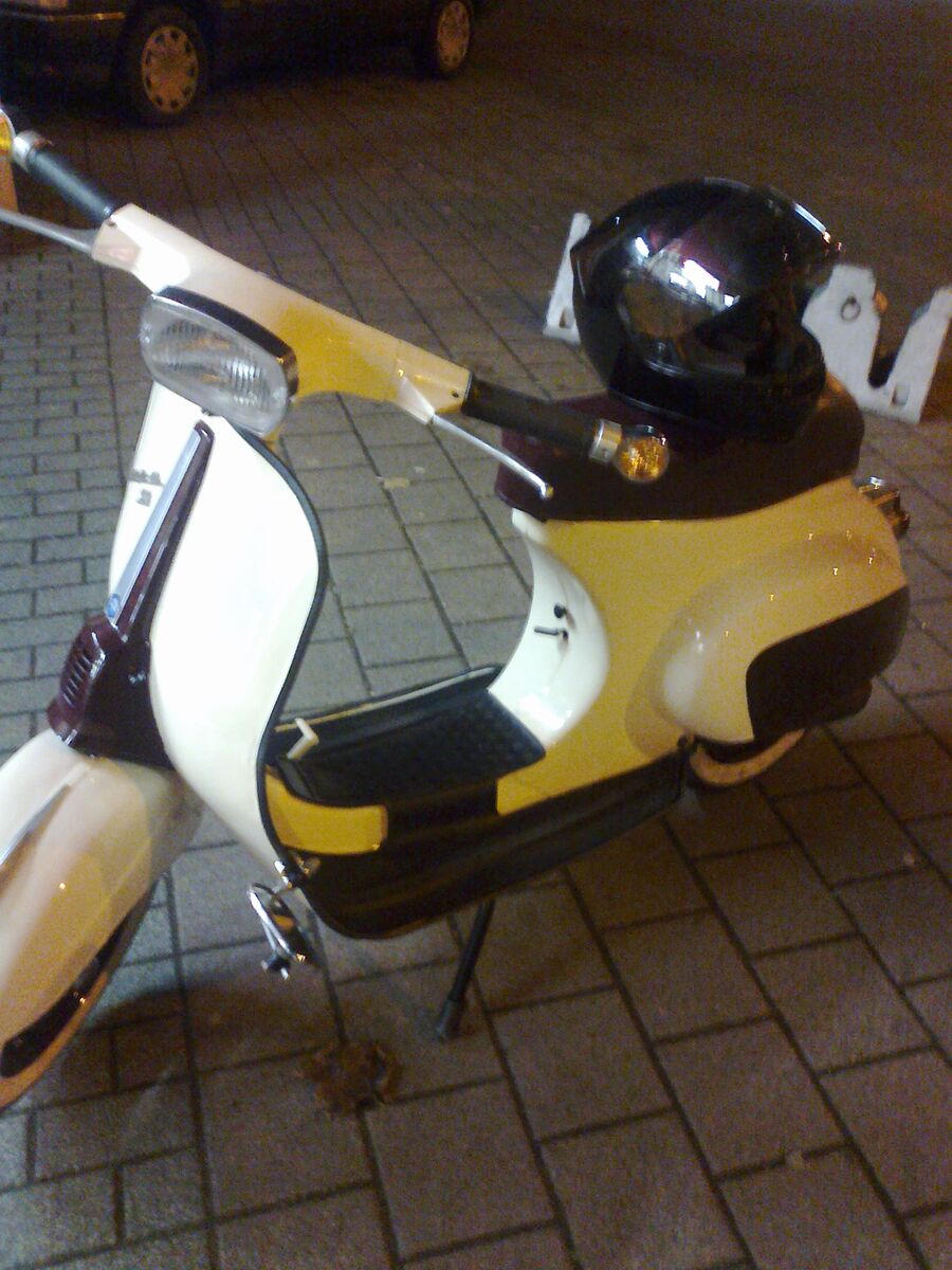 Sie hat einen 125er Primaveramotor drin und geht wie Schmidts Katze, genau richtig für F, die rasen alle so. ![]()