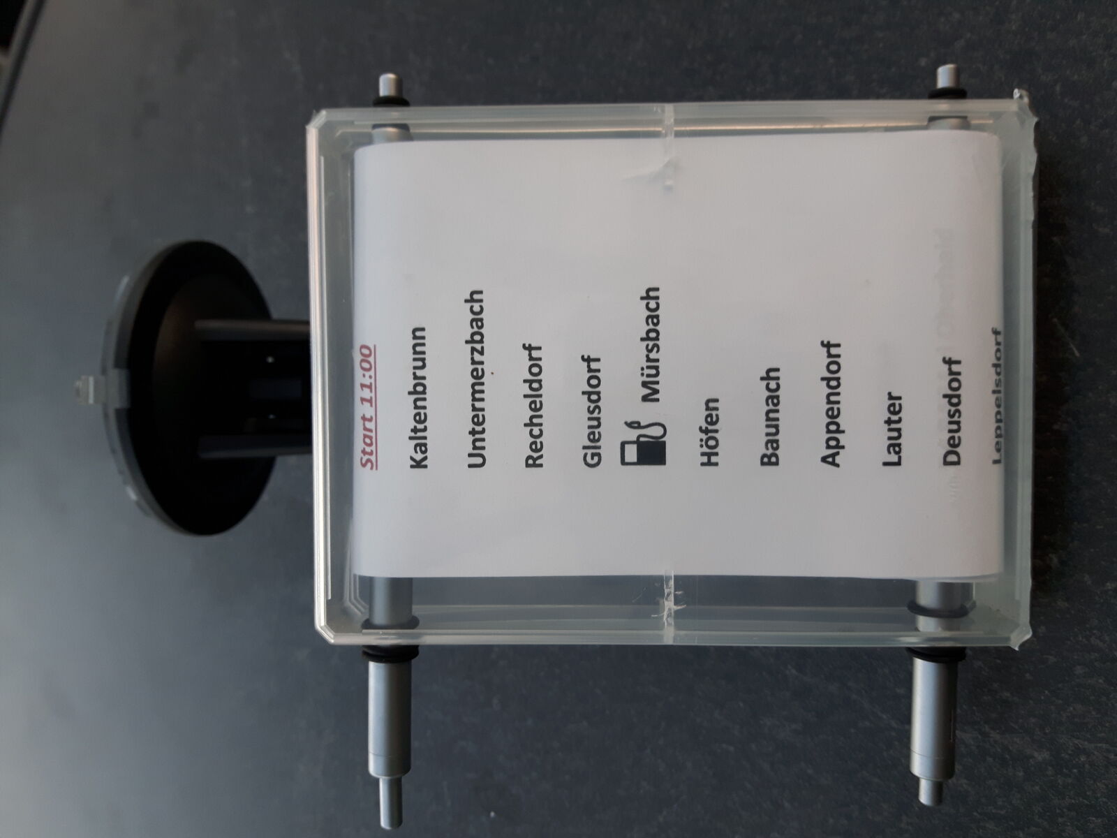 Ich habe immer nur son selbstgeschriebenen zettel am handschuhfach hängen der auch schonmal wegfliegt -