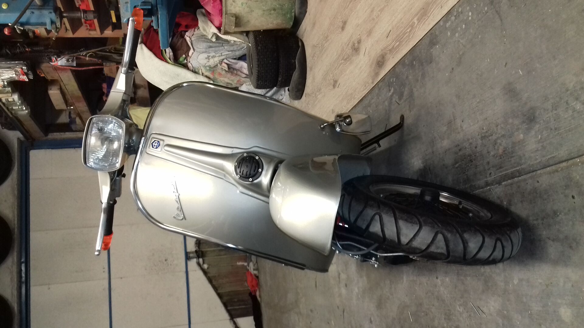 Darüber, dass ich meinem Kumpel unter die Arme greifen durfte und seine V50 wieder schön wird. Die war durch zwei Stürze nicht mehr so chick. Beinschild schweissen, rundherum viel spachteln und dann lackieren. Dann noch eine neue Superstrong Kupplung mit verstärkten Federn, neue Blinker und Hebel ...