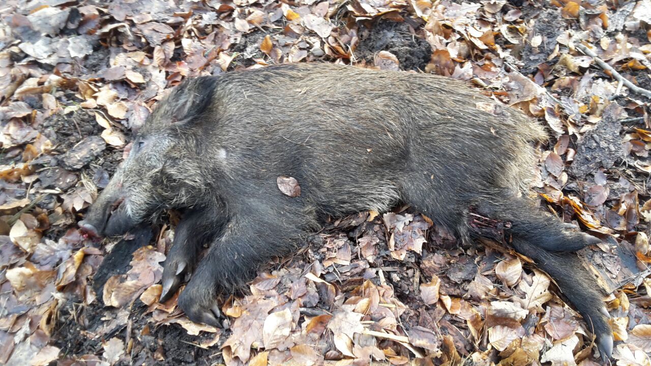 !Weil der Hund die Sau gestellt hatte und die Sau sich versteckt hatte vor dem Hund , also erst ein Schuss in den Hinterlauf dann ein zweiter in den Vorderlauf und dann kam der finale Kopfschuss, lt Aussage des Jägers. Angeblich macht man das so. Wir hätten sogar das Schwein kaufen können, hätten aber niemanden für die Trichinenschau und um es zu zerlegen...leider