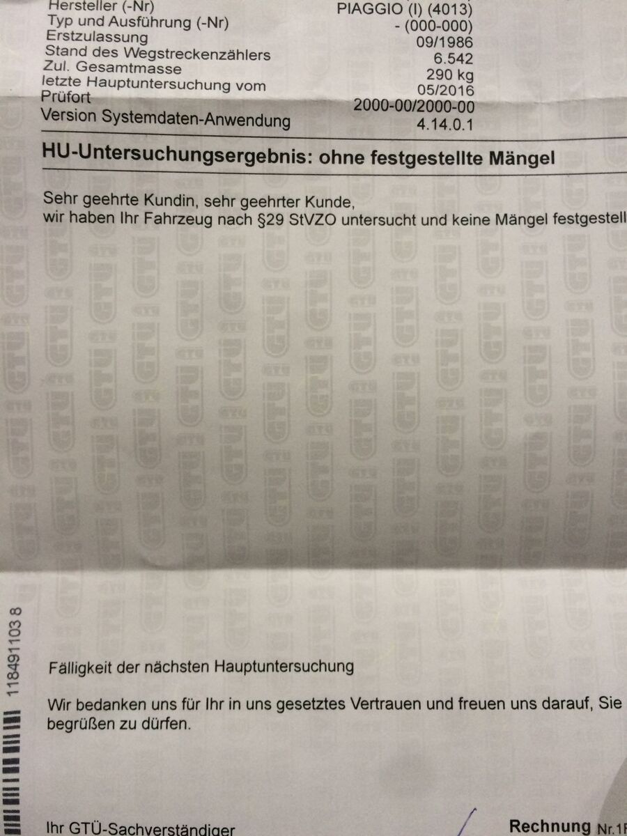 nicht vorhanden weil das fahrzeug streng genommen nicht angemeldet ist.