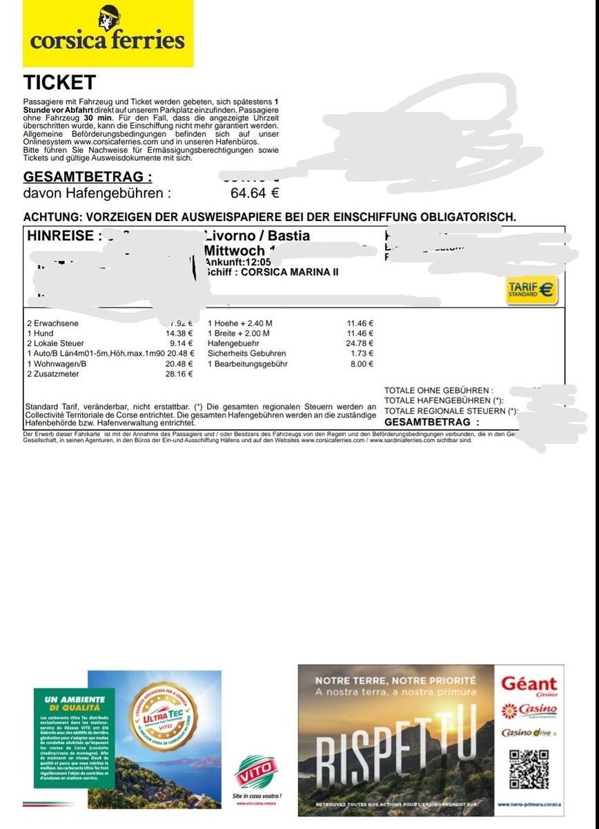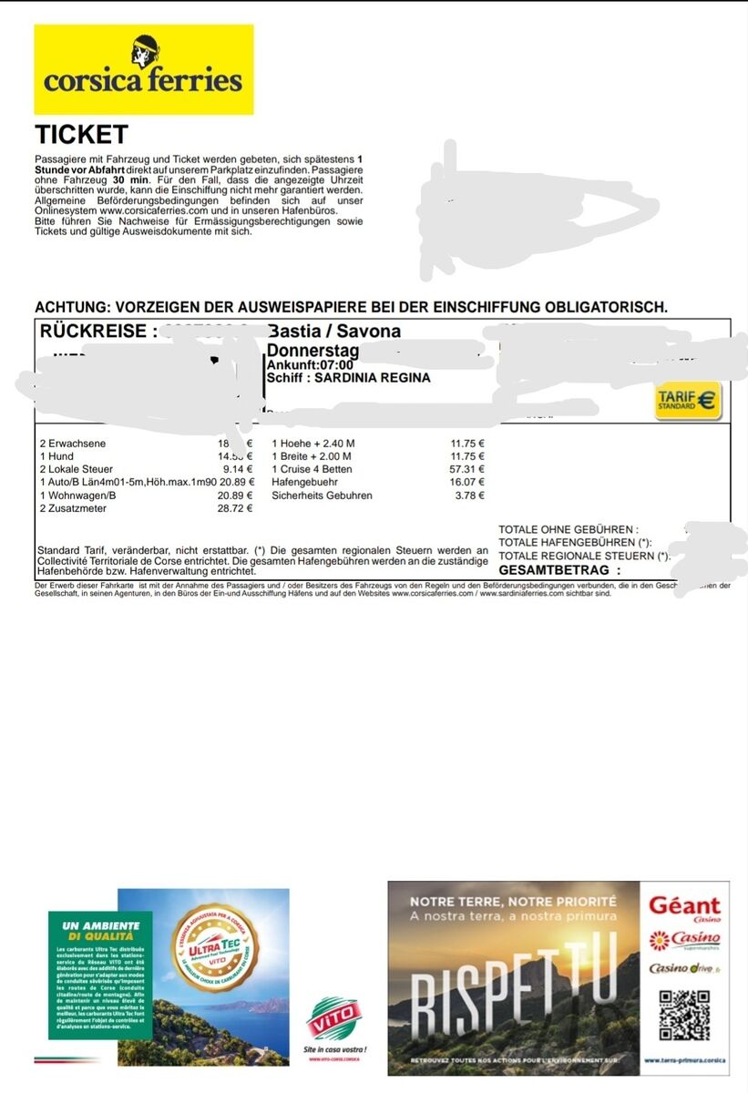 Also reine Kilometer sind es von uns aus bis zum Campingplatz auf Korsika1400km. Wir fahren mit Wohnwagen, haben aber erstmal 4 Tage Zwischenstop in Bozen. Dann geht's weiter bis Pisa. Da gibt es einen Campingplatz direkt am Stadtrand,wo wir nochmal eine Nacht bleiben. Von Pisa bis Livorno zur Fähre sind es dann morgens nur ca. 15min Fahrt,das passt dann und reicht ohne Stress und früh auf die Fähre zu kommen.
