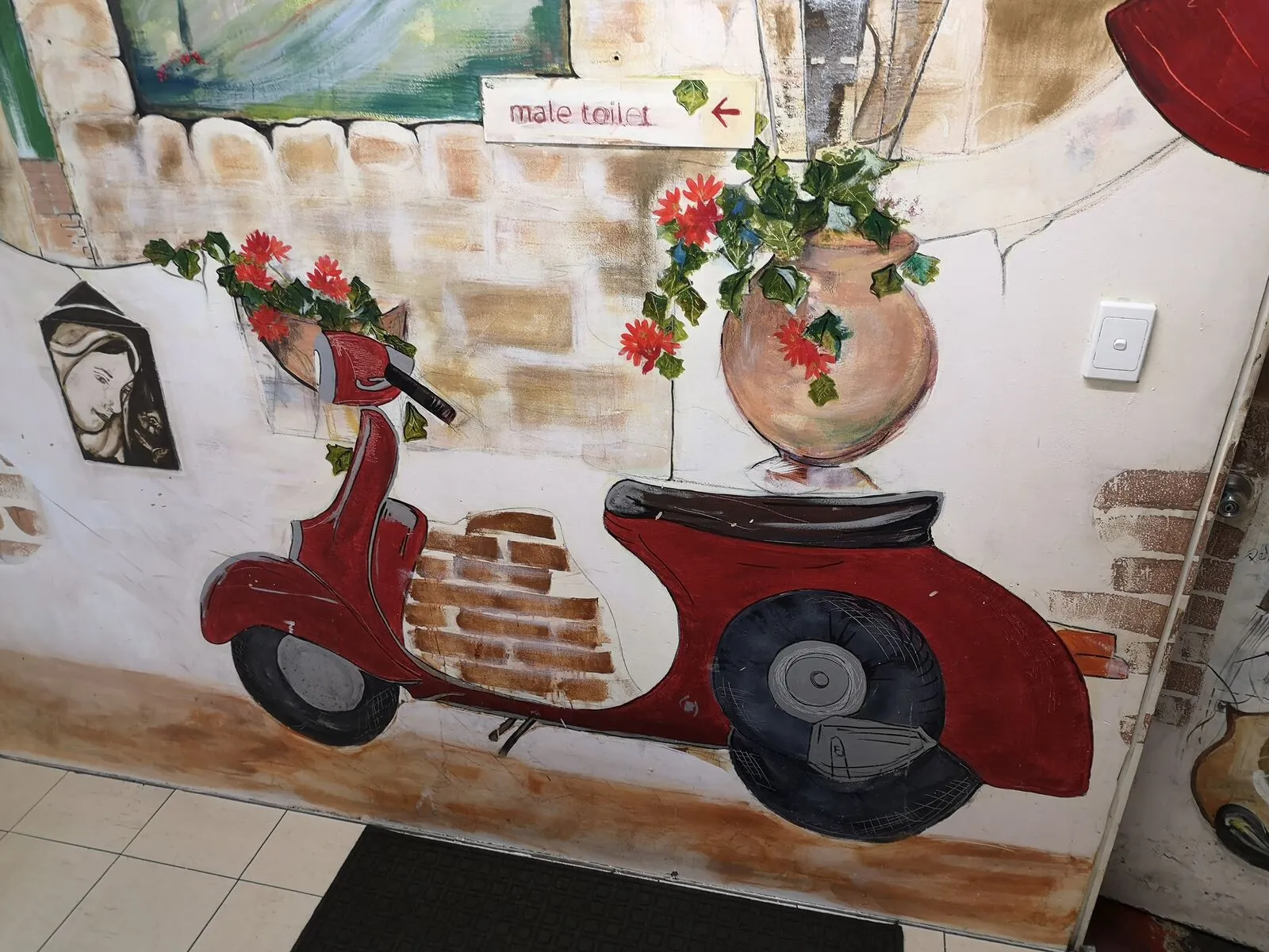 Wegweiser zur Herrentoilette in einer Pizzeria in Bunbury, Westaustralien top-)