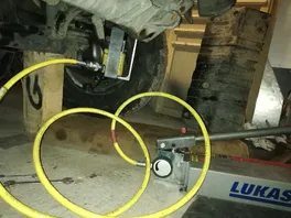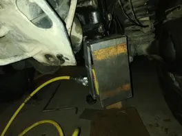 Also mußte ne andere Lösung her. Kumpel (danke Thomas) hat mir dann nen abdrücken gebaut. Draufgesteckt auf den Lenkhebel, hydraulische handpumpe rein,pumpen. Klappte auch nicht. Die Vorrichtung hat sich nur gut verbogen. Obwohl die schon gut massiv ist. Also mit nen motek wieder grade gedengelt und nochmal probiert. Da hat's dann geklappt. Und heile geblieben ist auch alles. An meinen alten Lenkgetriebe haben wir mit nen riesigen 2 Backen Abzieher und nen Schneidbrenner 45 min gebraucht bis der Arm heile runter war. Die sitzen auf nen verzahnten Konus.