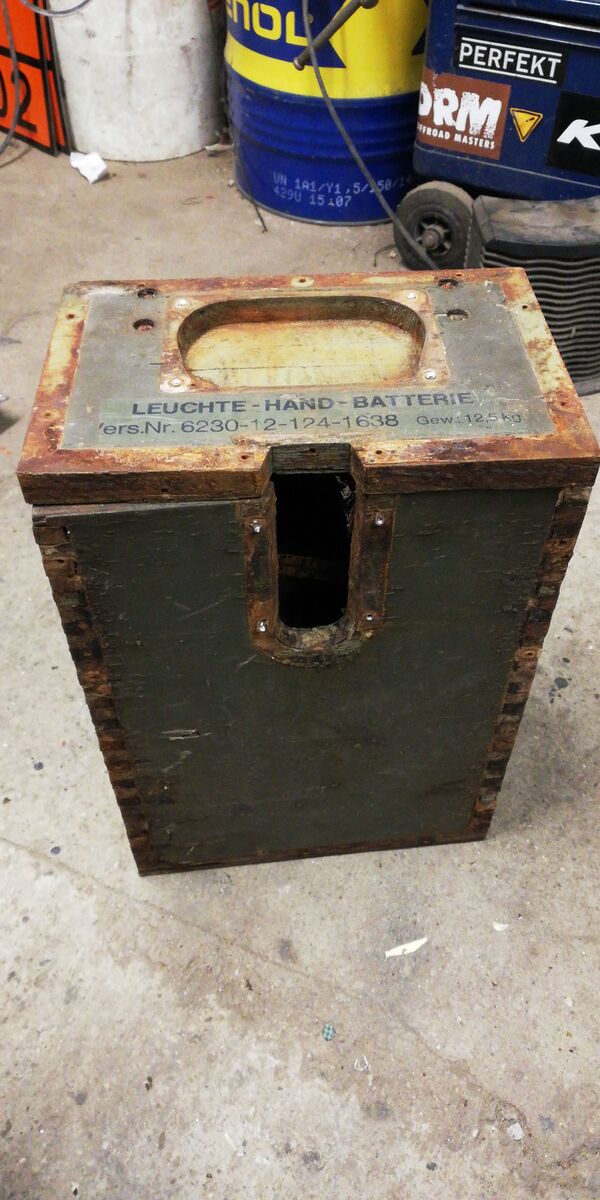Beschläge und die Eckschutzwinkel sind schon zum Sandstrahlen weg.