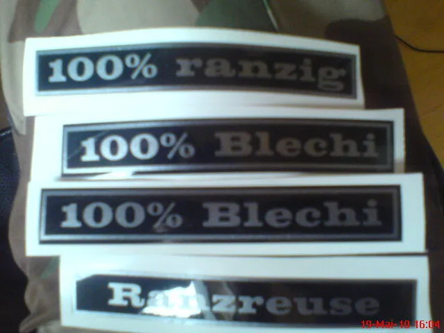 Der Inhalt war natürlich auch super. 1. absolut geniale Qualität und vorallem die zusätzlichen Aufkleber, nun kann ich mit dem Blechi auf nem Treffen direkt klar stellen wem der Blechi gehört :D