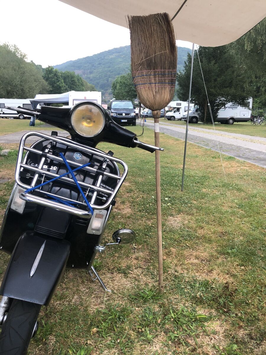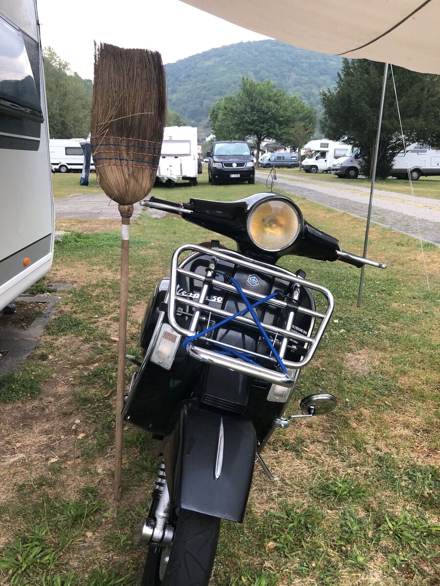 Mit der Fuffi zum Campen gefahren, Sie hat dort ihr eigenes Vespa Port ...