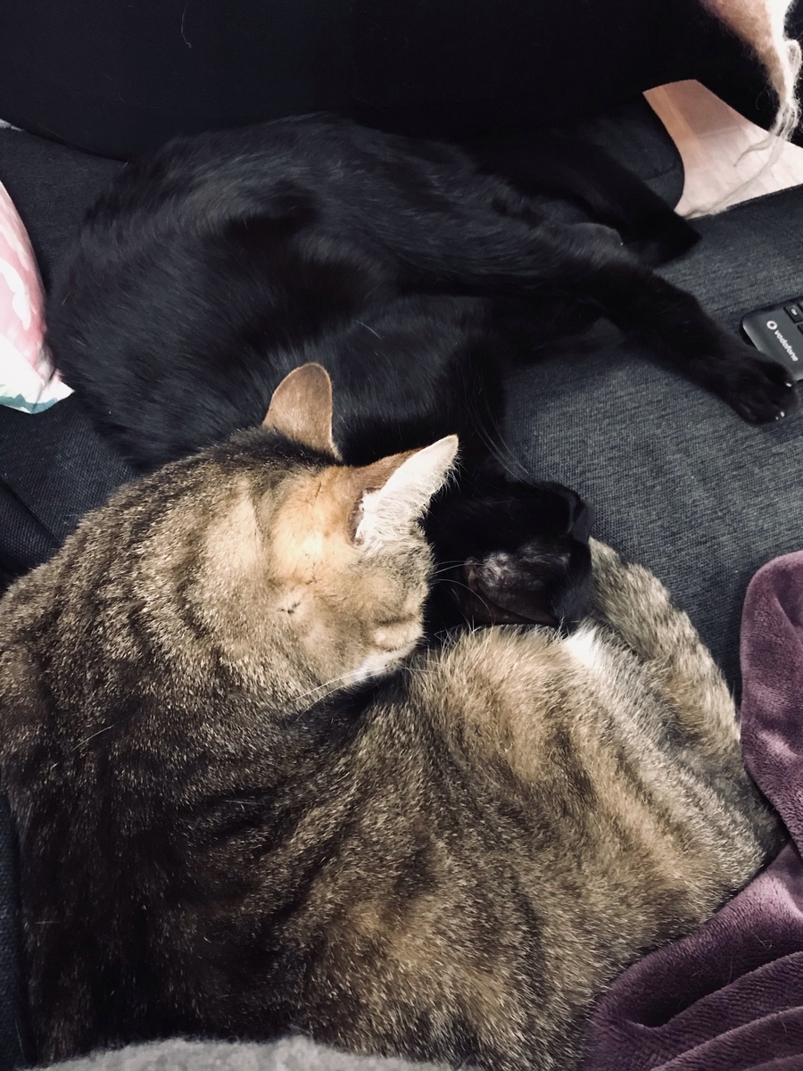 Ich freu mich sehr, dass der Kater wieder da ist. Er war gestern Morgen um 4 durch die Katzenklappe verschwunden und nicht wieder aufgetaucht. Die Garagen in der Nachbarschaft haben wir abgesucht, aber ihn nicht gefunden. Gerade eben ist er wieder durch die Klappe spaziert und hat sich zu seiner Schwester auf die Couch gelegt.