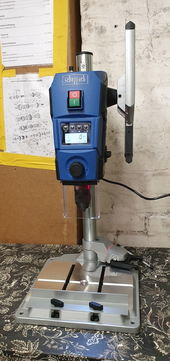 Endlich mal ne Standbohrmaschine zugelegt und gleich damit den kaputten Dremel repariert (Pin zur Arretierung).