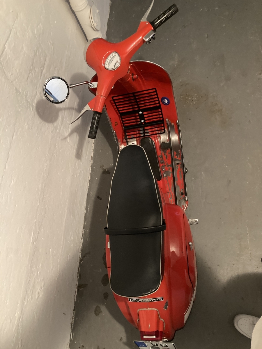 Ich freue mich darüber, dass meine 125er Primavera nach einem halben Jahr Aufarbeitung fertig ist. Es ist alles original, Lack habe ich teilweise freigelegt. Arbeitszeit waren ca. 120 Stunden. Sie ist Baujahr 1974 und war bis dato in Finnland zu Hause. Probleme war springen der Gänge. Hab den Kupplungskorb neu vernieten lassen und die Schaltklaue war verbraucht. Sie hat den 121 ccm Pinasco Zylinder bekommen und ne original Banane, fährt sehr schön😊 Danke für Euere Hilfen, besonders an Menzinger