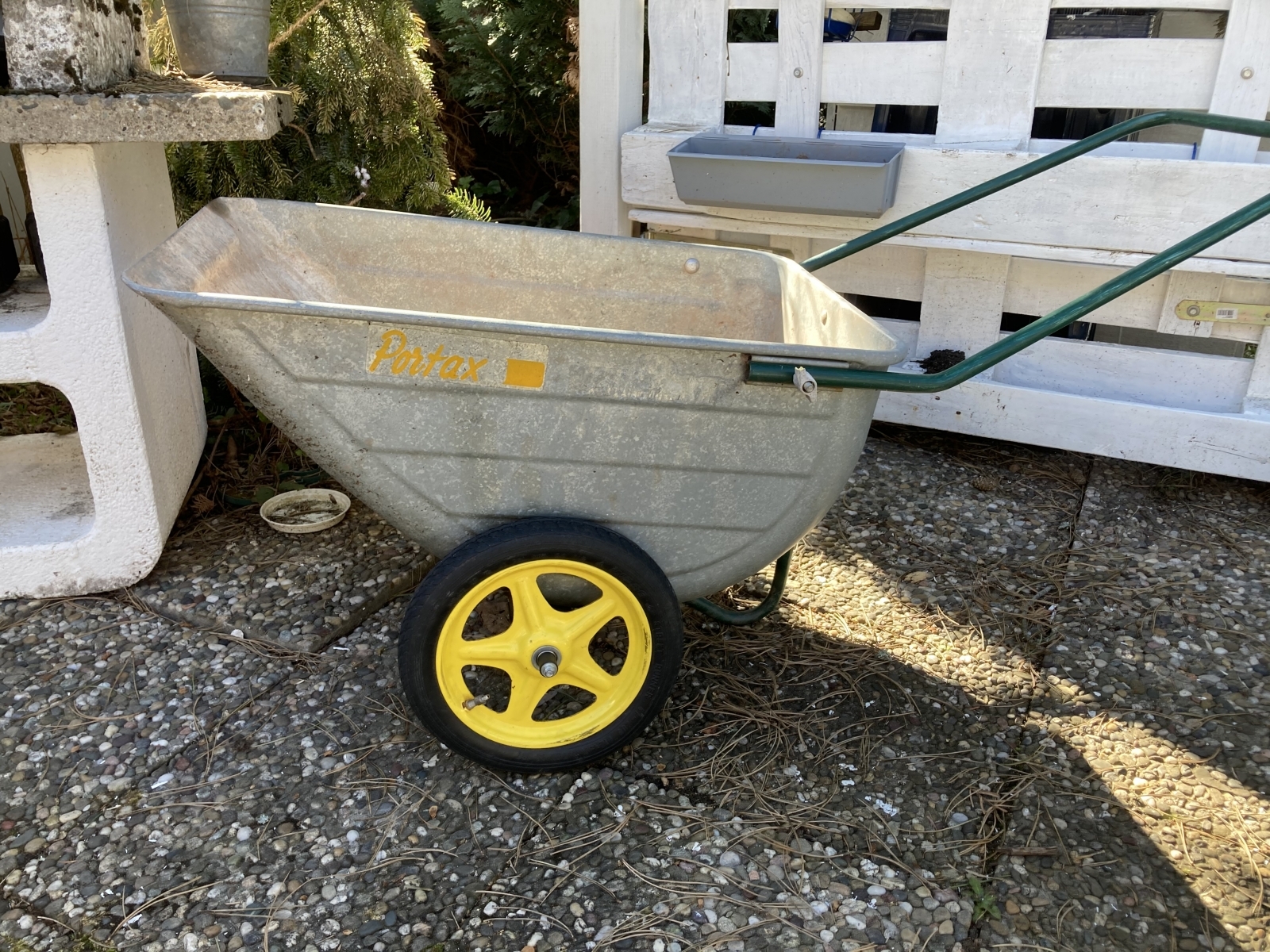 Dafür steht der alte Kinderwagen jetzt aufgebockt ohne Räder in der Ecke??