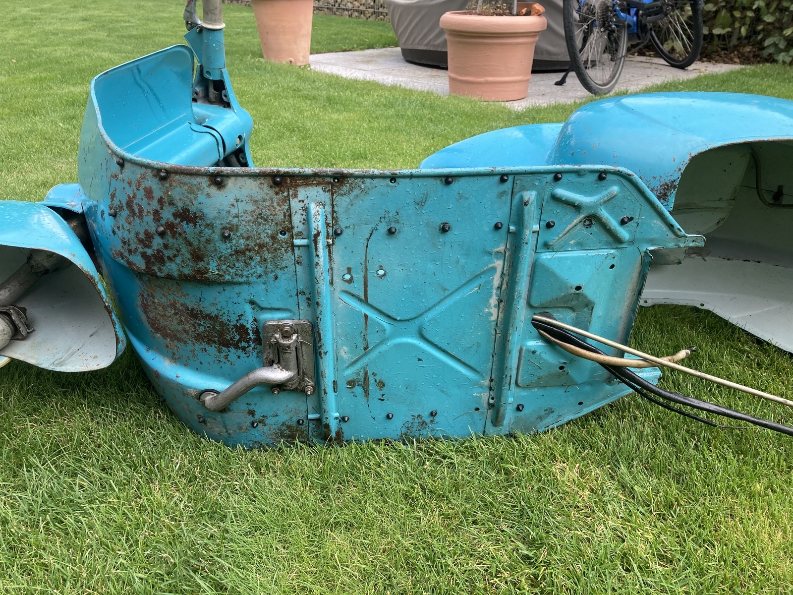 Das ist Bruders 2. Version mit nach vorne schwenkender Klappe. Wurde getestet und für gut befunden. Dann hat er sich einen in schön gebaut und ich habe den Prototyp bekommen.