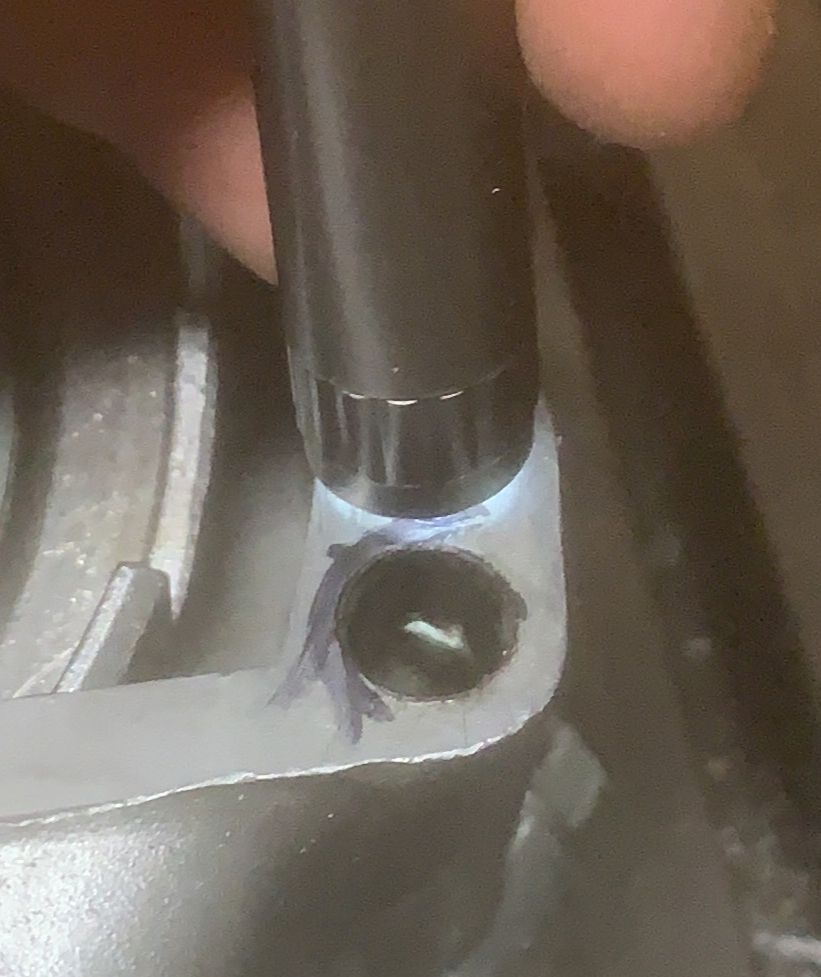 Bei der Gewinde-Reparautur KuLu Gewinde habe ich beim Rausbohren des Gewindes, den danebenliegenden Ölkanal erwischt -> nicht gut 🥴