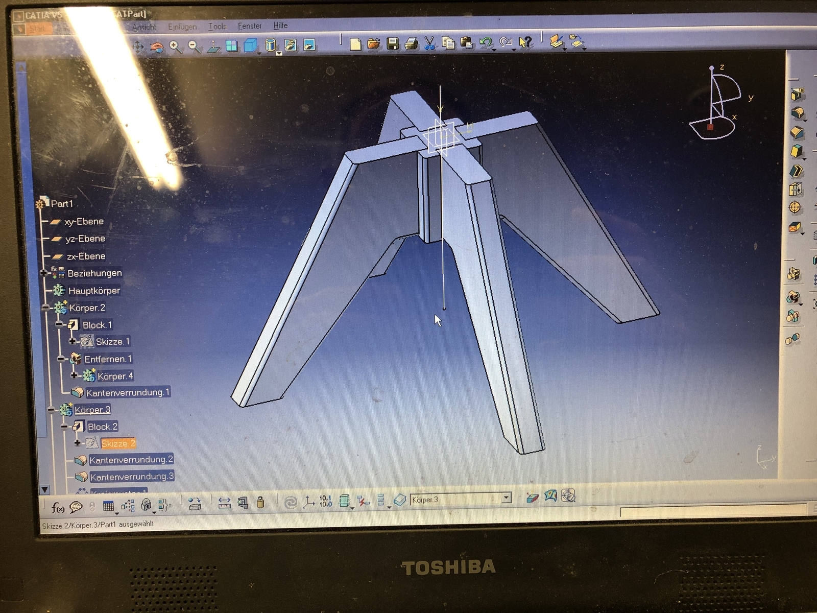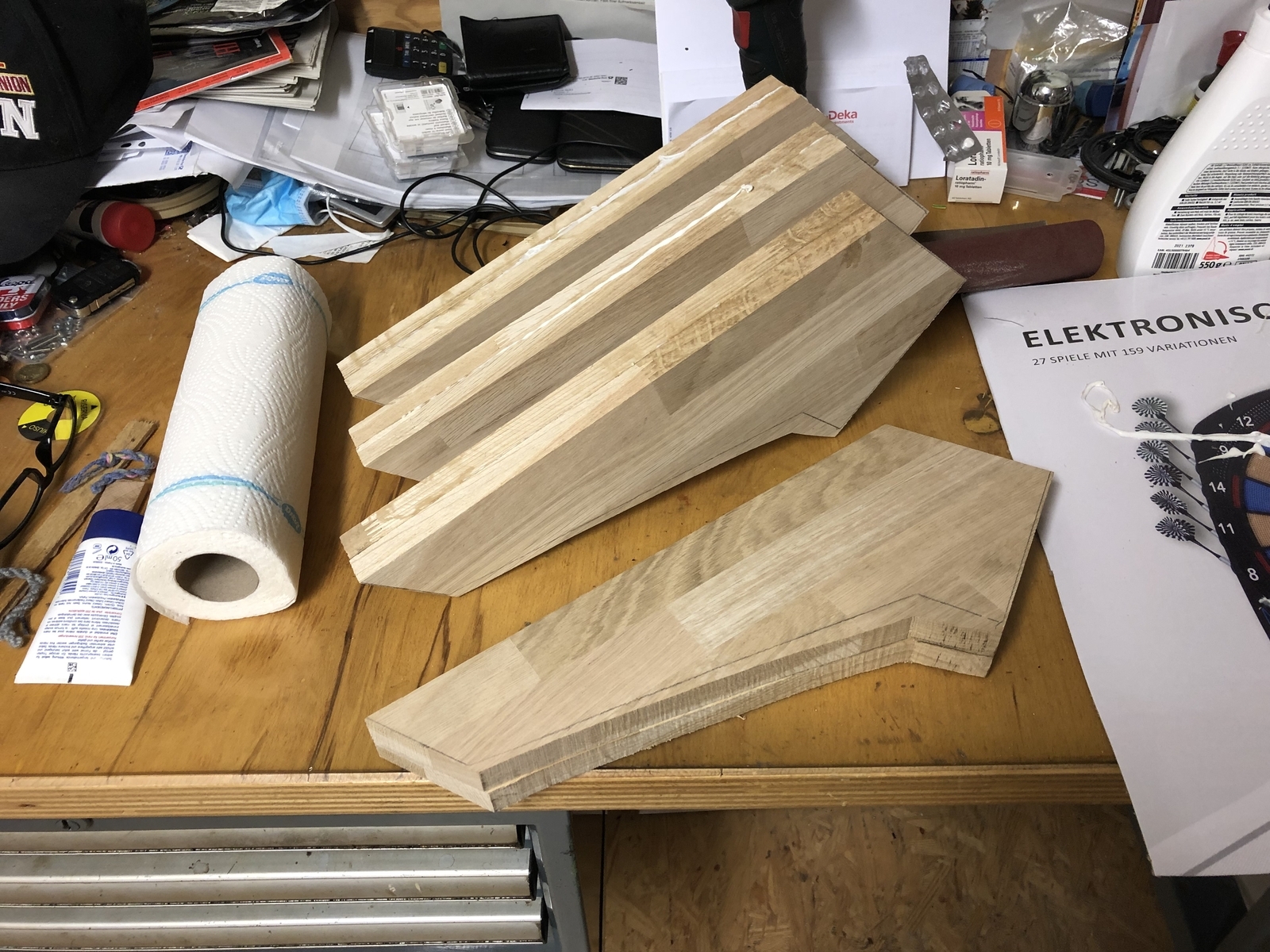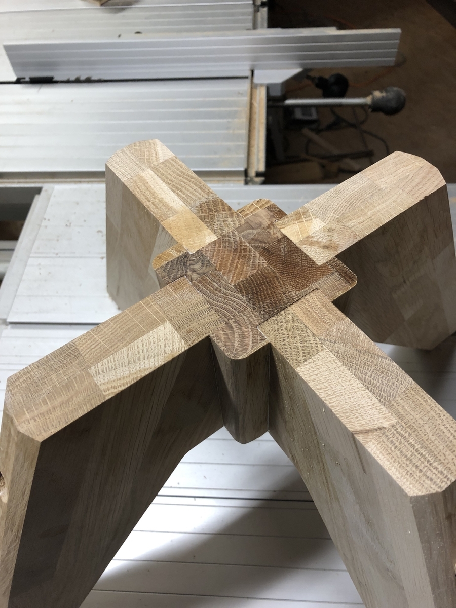 Aber aus Leimholz die Beine doppelt grob formatiert und immer zwei miteinander verleimt: