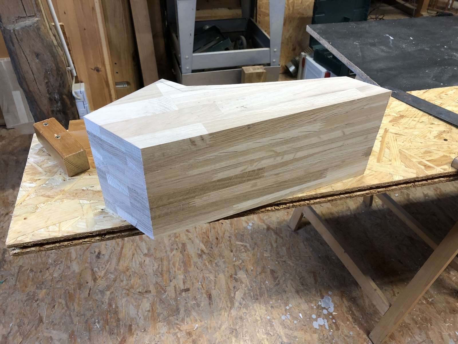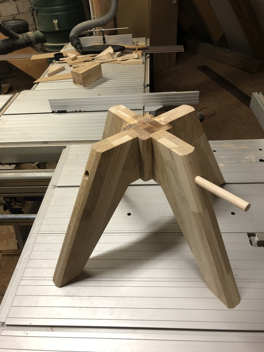 Lange Rede, kurzer Sinn, ich darf endlich mal wieder schreinern, weil jetzt bekommt der einen Fuß aus Eiche...
