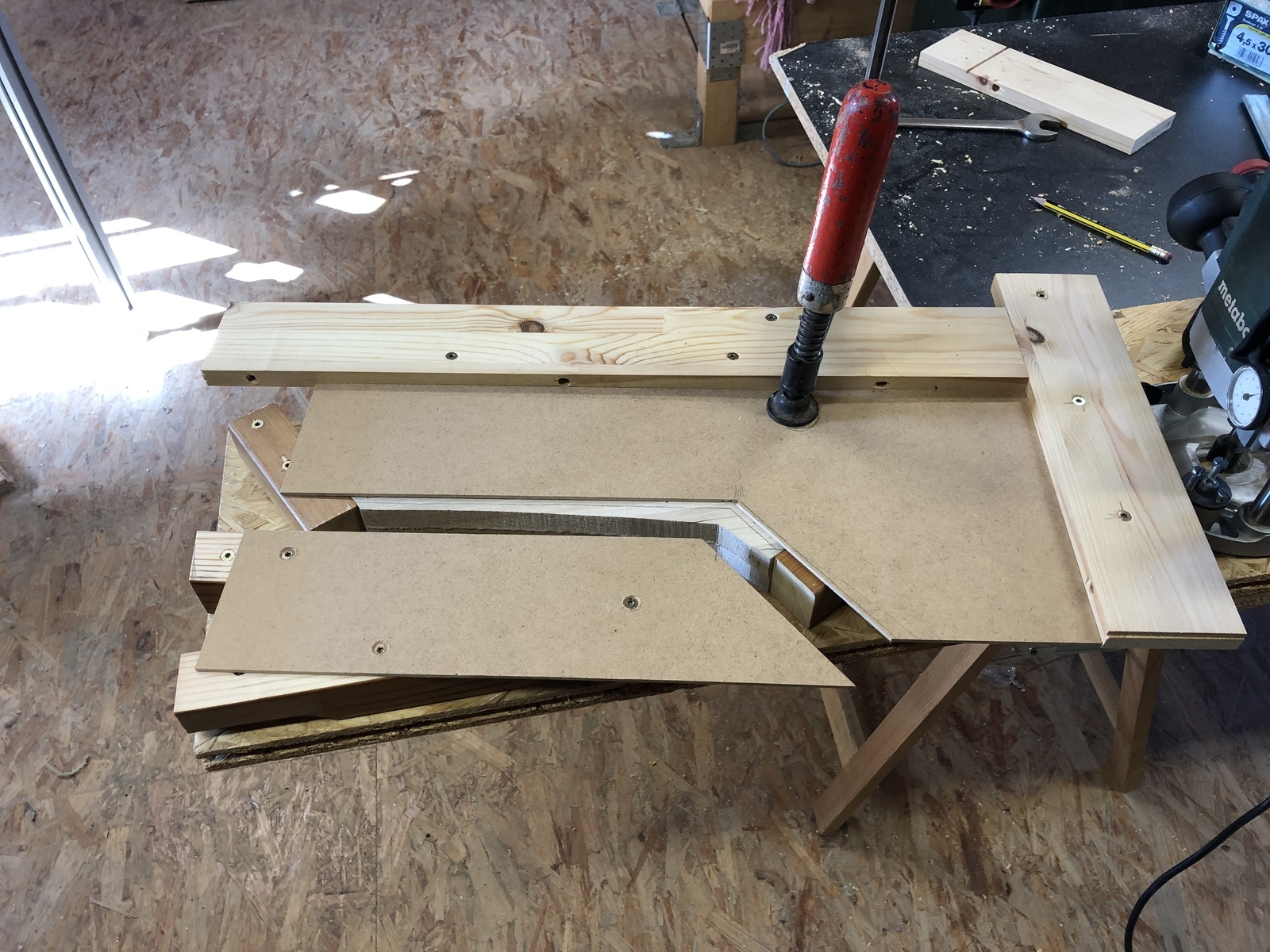 So, Montag habe ich frei, weil ich um die Mittagszeit Pellets bekomme. Davor putze ich den Ökofen und danach baue ich mir eine Fräsvorrichtung für die Innenseite der Beine.