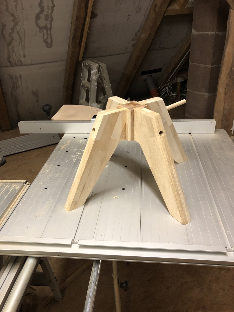 Das war ein mittleres Drama, weil der Tisch unheimlich komplizierte Beine hat (zweifach Gehrung und was weiß ich was für eine komplizierte Anbindung an den Tisch).