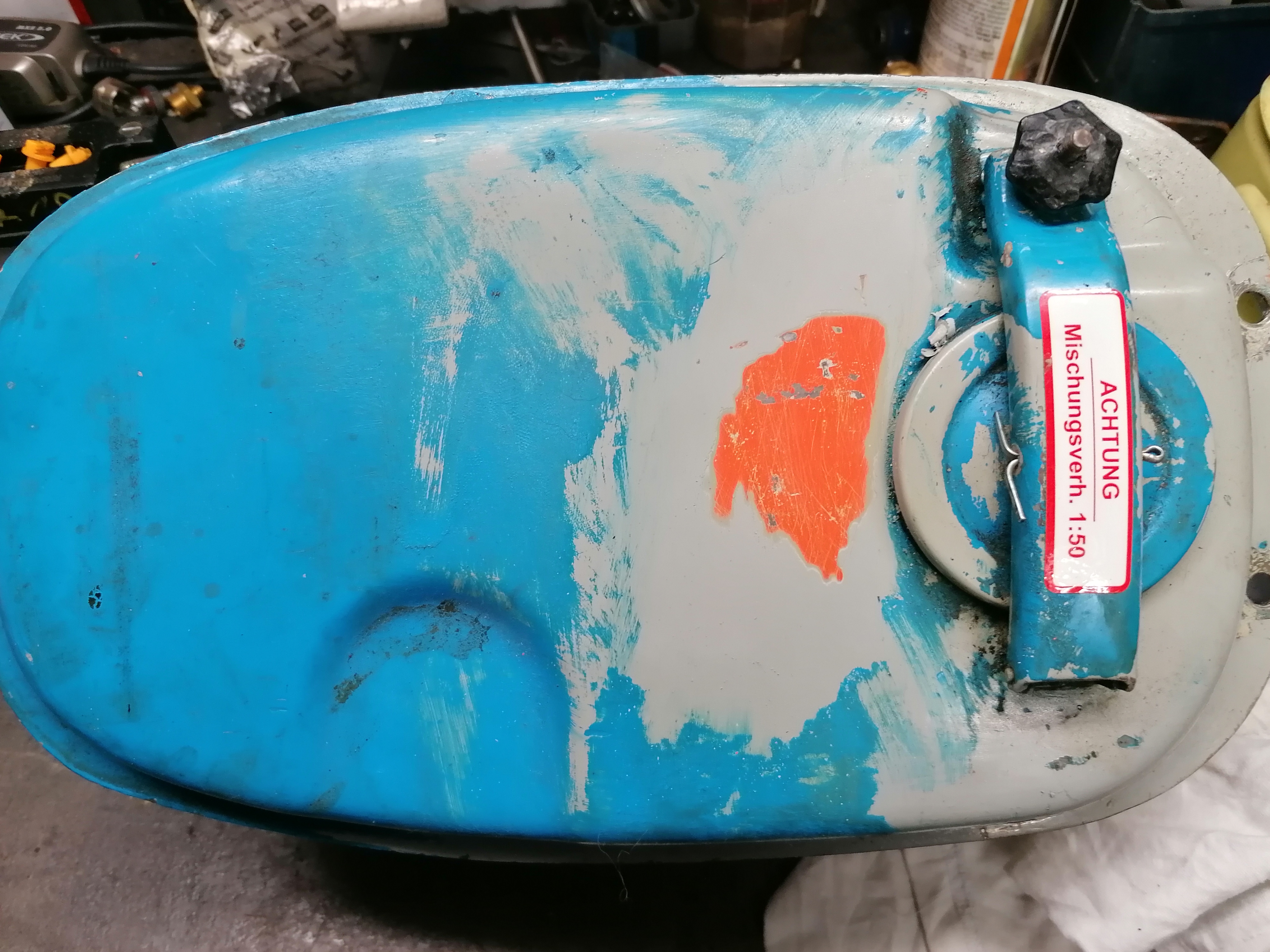Ich habe heute mal aus lauter Neugierde angefangen nach O Lack zu suchen. Am Rally Tank der in der Sprint drin war als ich sie gekauft habe und an der Lüraabdeckung die ich aus Bockhorn habe. Der Tank hat angeschliffenen O Lack Orange und die Abdeckung das Silber oder Alufarben. Den Tank mache ich wieder nackig bis aufs ranzige orange.Kommt dann wieder in die Sprint rein. Jetzt ist in der Sprint wohl ein Repro Rally Tank verbaut. Woran erkennt man eigentlich einen Repro Tank? (Den hatte ich noch liegen gehabt. Wurde getauscht weil der Sprithahn am anderen Tank undicht war) Der auch schlecht gelackt ist. Und die Abdeckung wird ordentlich schwarz gelackt so das sie zur Rally passt. Oder je nachdem wie es komplett freigelegt aussieht kommt die an die Sprint und die von der Sprint an der Rally. Weiß ich noch nicht genau.