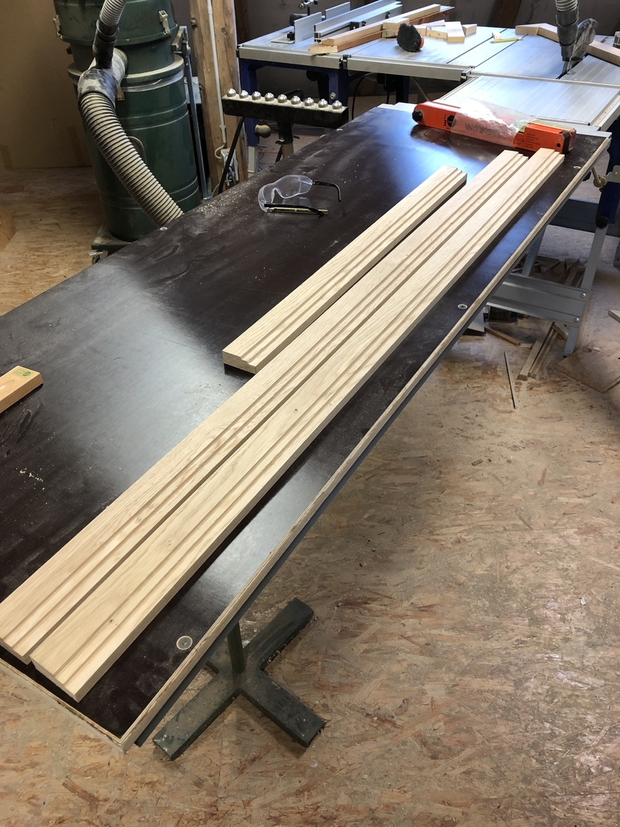 Abrichten, Dickenhobeln und die Absätze für den Spiegel und die Halteplatten gefräst: