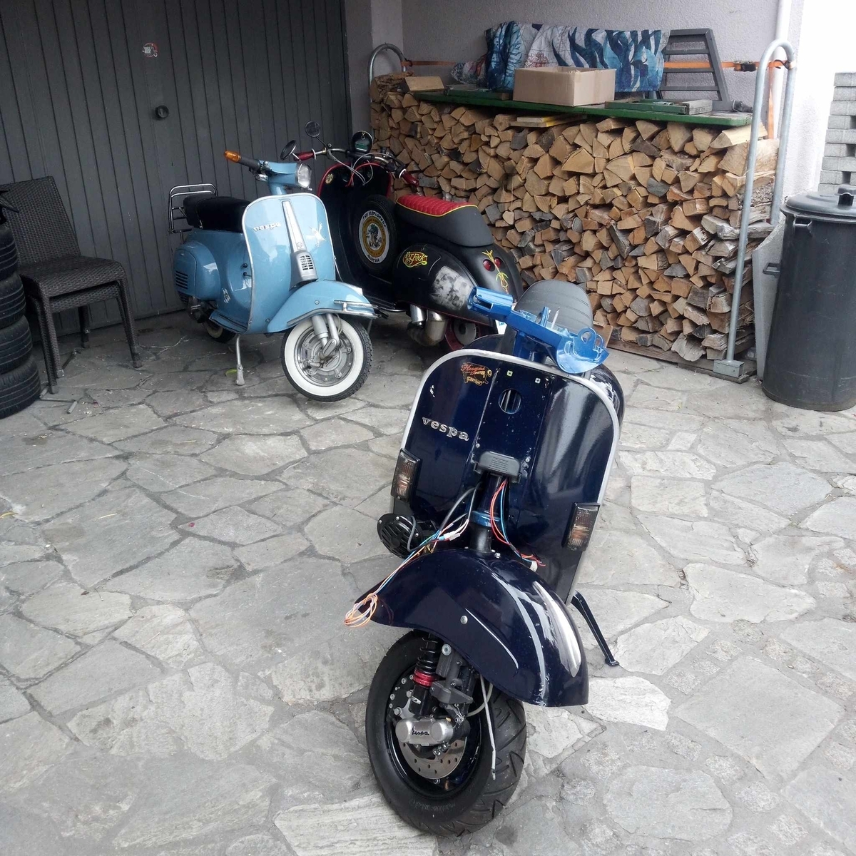 PX alt, Repro GS Backen, Verbreiteter Sprint Koti, Rally Lenker, Sip Tacho, LML Tank mit Geber-Anzeige im Staufach, schön gewürzt mit Fettem 221er...das wird schon...anderst als Orginal^^