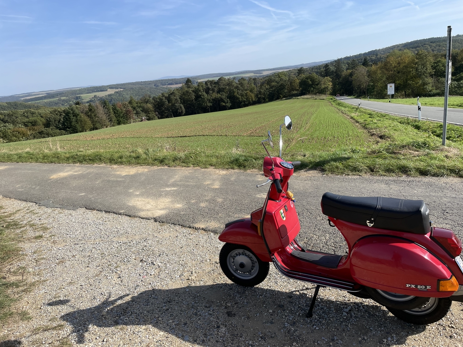 Ich freue mich also gerade, dass ich glaubhaft versichern konnte, dass in meine Vespa keine 50l Benzin passen. 3l gingen dann noch rein. 6 Euro.