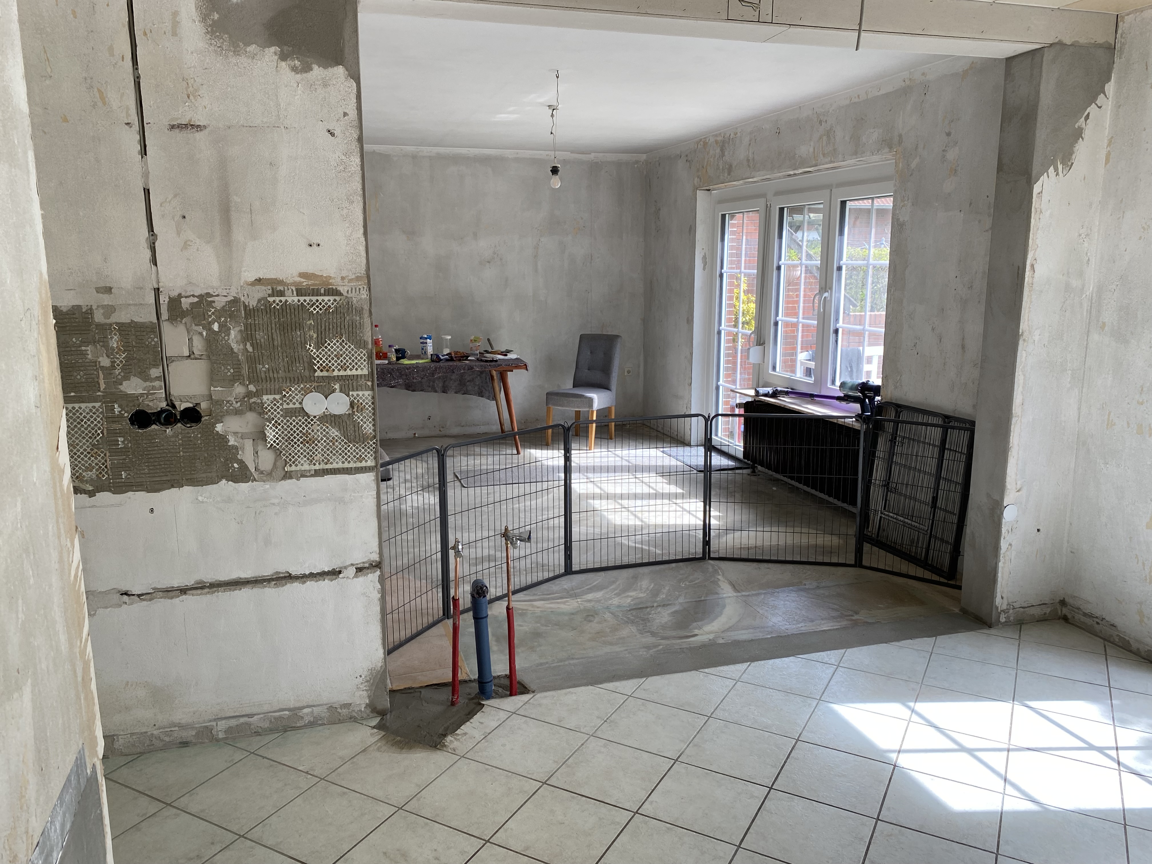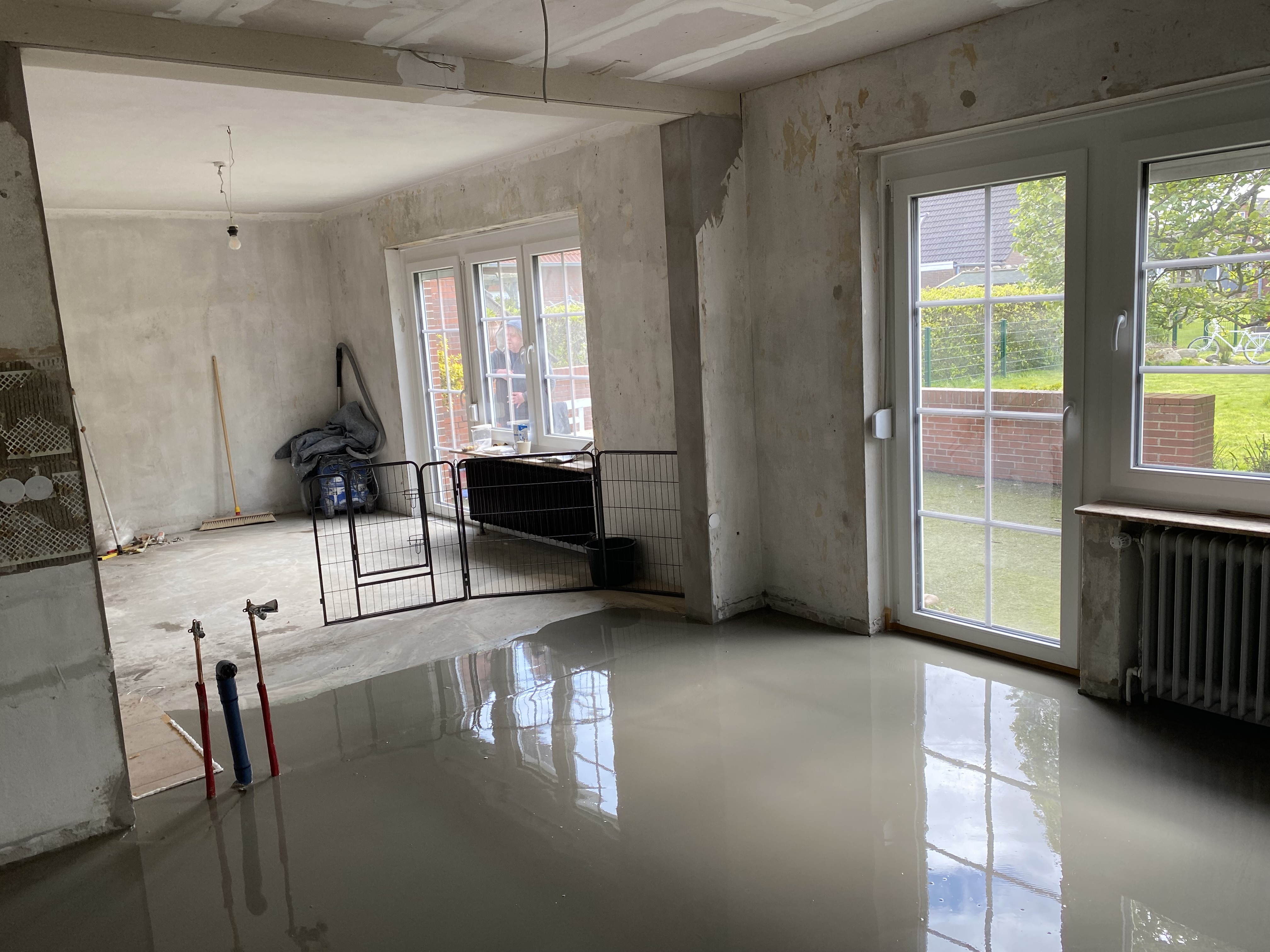 Heute sind wir eine Woche ohne Küche. Der Maler war da, Trockenbau und Ausgleich/Spachtelmasse für den Boden. Zudem war noch der Küchenbauer da und hat nochmal Maß genommen. Der Klempner muss nochmal kommen, weil ein Ausgleich- oder Warmwasserbehälter der Heizung tiefer gelegt werden muss.