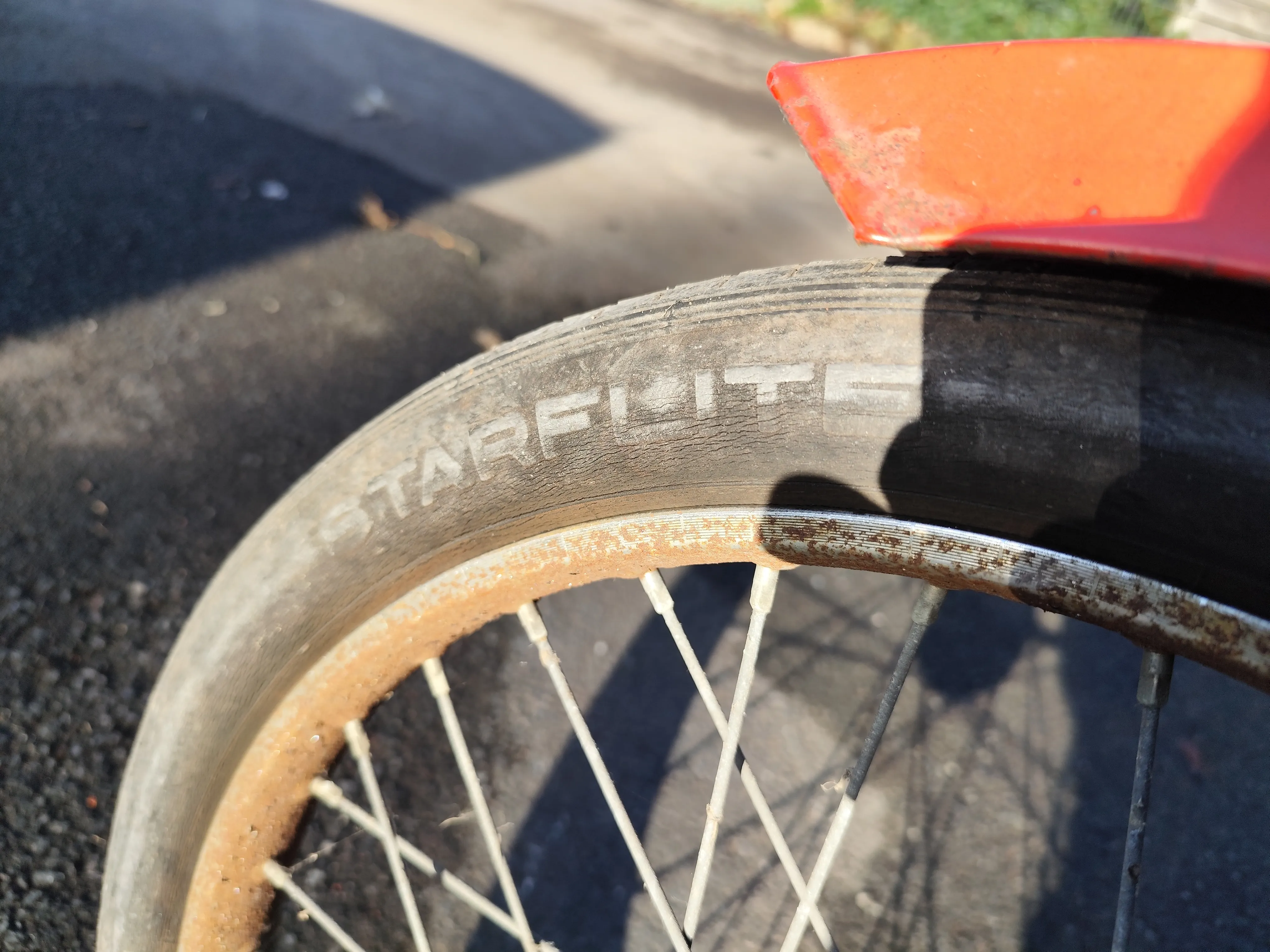 So'n defekt hatte ich auch noch nie gehabt. Aber schön das noch die ersten Reifen von 1972 drauf sind. Und Starflite gelabelt. Zündfunke gibt's genausowenig wie Papiere oder nen funktionsfähigen Gasgriff. Motor dreht.Letzte Kennzeichen von 1982.