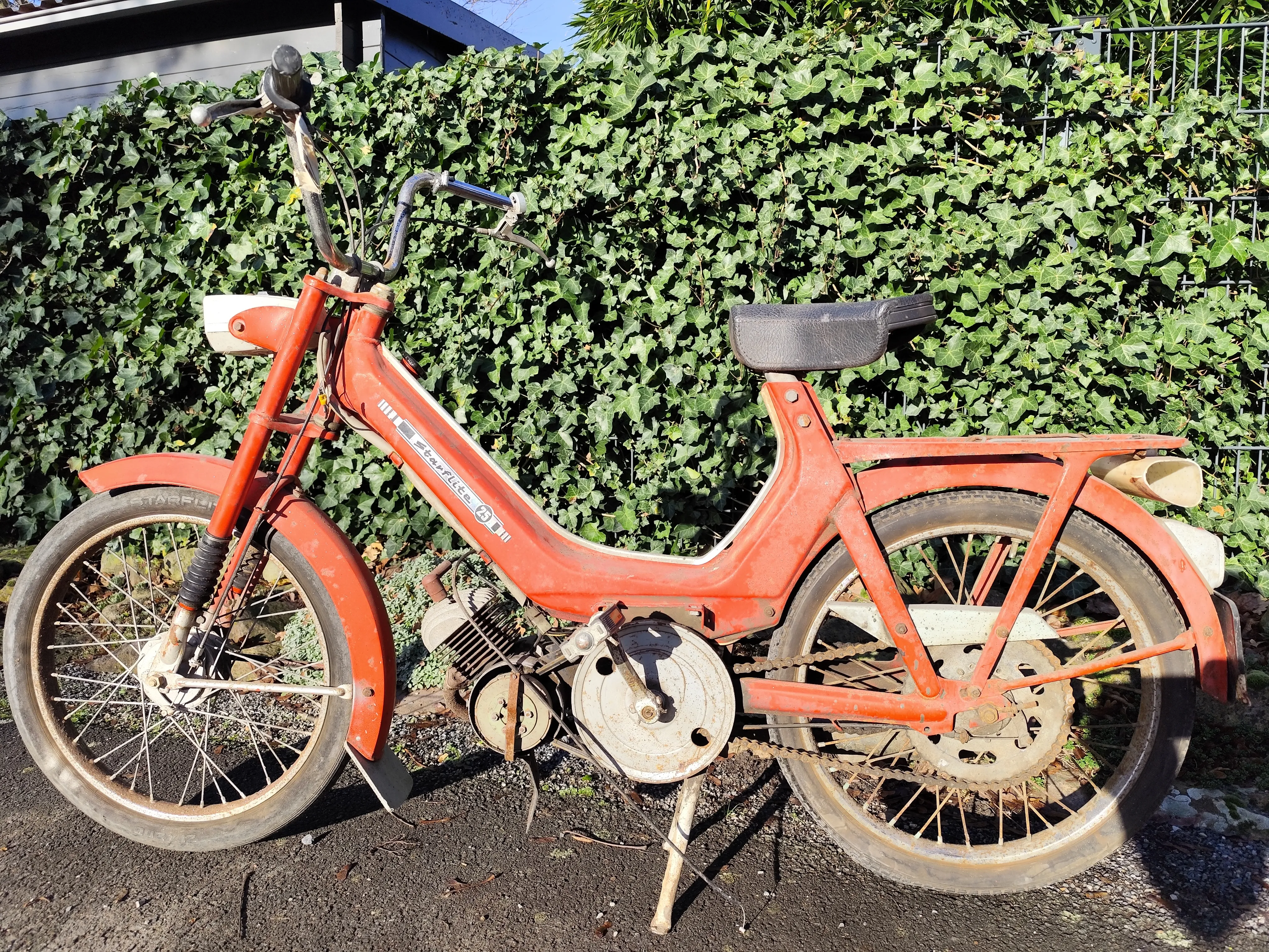 Hier mal mehr Bilder von der Batavus Starflite 25 Mofa. Leider hat der originale Hinterreifen es hinter sich ![]()